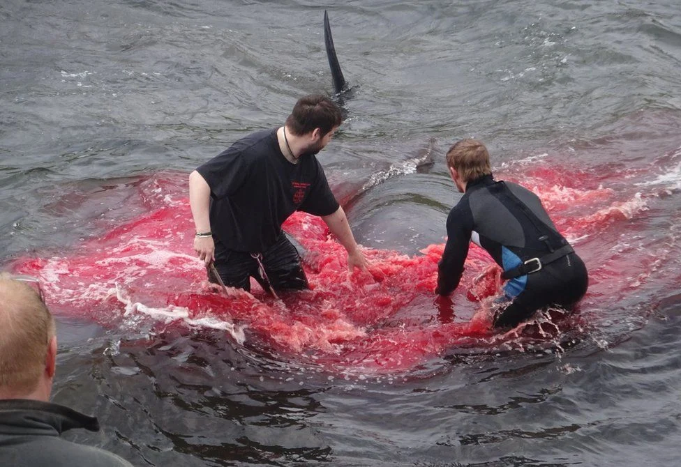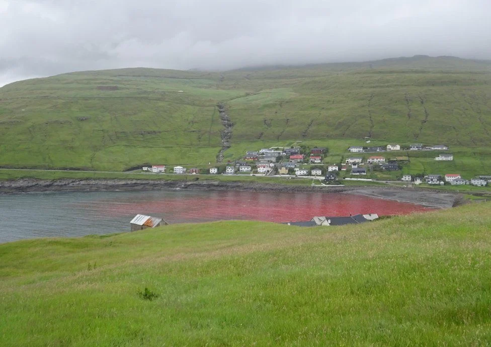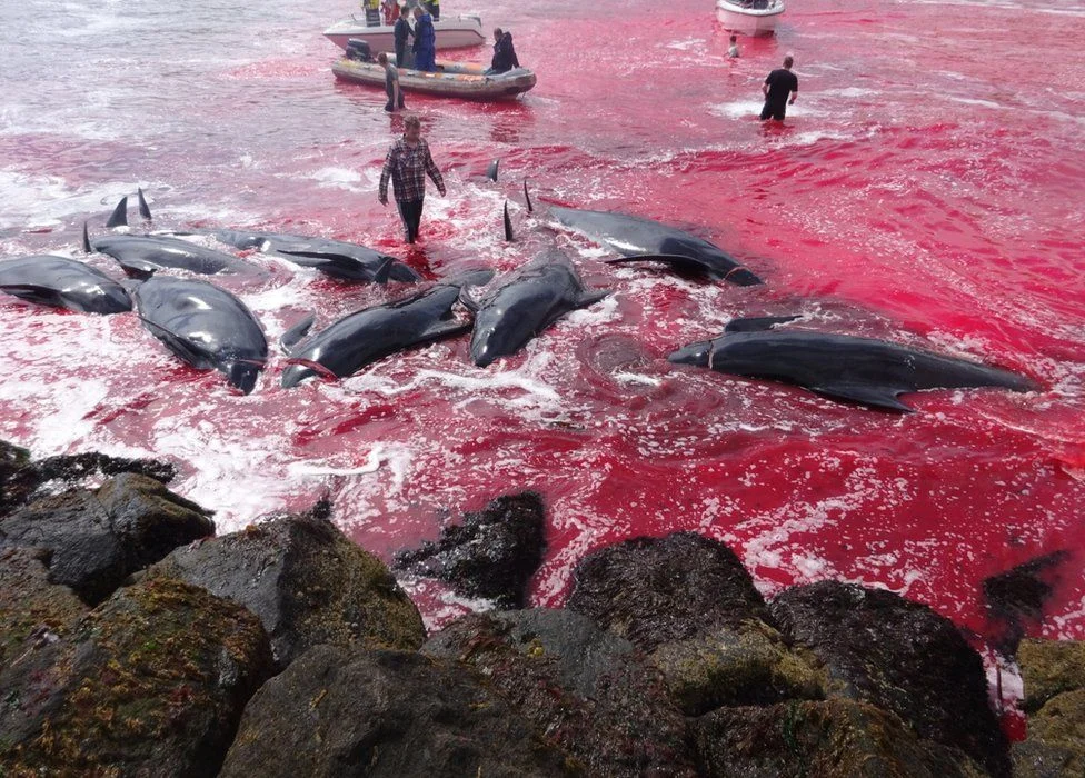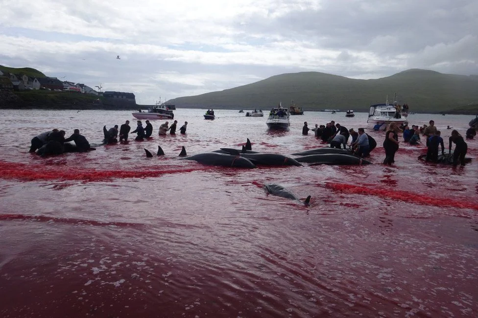 บีบีซีเผยภาพสุดสะเทือนใจในประเพณีล่าวาฬบนเกาะแฟโร ที่มีวาฬหลายร้อยตัวถูกสังหารด้วยอาวุธอย่างโหดเหี้ยม เพื่อเป็นอาหารสำหรับฤดูหนาว จนทะเลกลายเป็นสีแดงสด