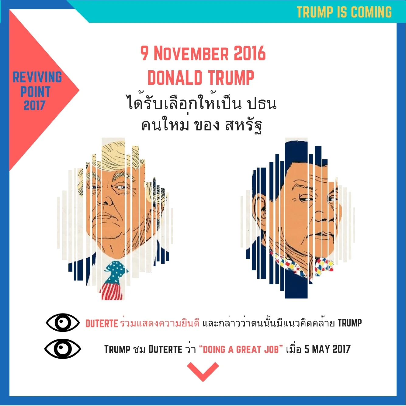 และถึงแม้ว่าสหรัฐอเมริกาจะเปลี่ยนท่าทีของตัวเองใหม่หลัง ทรัมป์ ขึ้นมาดำรงตำแหน่ง ก็อาจไม่ใช่เรื่องง่ายนัก ที่จะกระชับความสัมพันธ์ให้กลับมาดีดังเดิม เมื่อฟิลิปปินส์เองก็เดินหน้าเชื่อมความสัมพันธ์กับจีนอย่างชัดเจนไปแล้ว ซึ่งสหรัฐอเมริกาก็ดูไม่แคร์เท่าที่ควรด้วย ดังนั้น ความสัมพันธ์ของทั้งสองอาจต้องอาศัยความเข้าใจผ่านการนำของผู้นำประเทศมากๆ ไม่ว่าจะด้วยวิธีรื้อฟื้น ‘ความหลัง’ ครั้งก่อนเก่ามาช่วยประสานรอยร้าว หรือแม้กระทั่งหาประเด็นใหม่ๆ เพื่อพัฒนาความสัมพันธ์ในมิติอื่นๆ ต่อไปก็ตาม