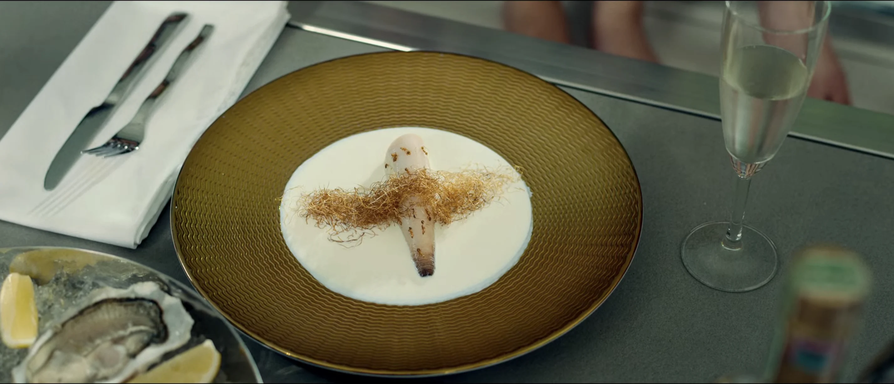 - อาหารที่หน้าตาสื่อถึงอวัยวะเพศชาย ทั้งฝอยที่ชวนให้นึกถึงเส้นขน และน้ำซอสสีขาวที่เยิ้มออกมา ผนวกกับตัวละครที่กินที่เป็นคนรุ่นใหม่ ตื้นเขิน ทำผิดกฏหมายได้ชนิดไม่แคร์สังคม รับบทโดนยูทูปเบอร์และคอนเทนต์ครีเอเตอร์ชื่อดัง ก็ชัดเจนว่าเชฟพอลกำลังแจกอะไรให้ใครกิน