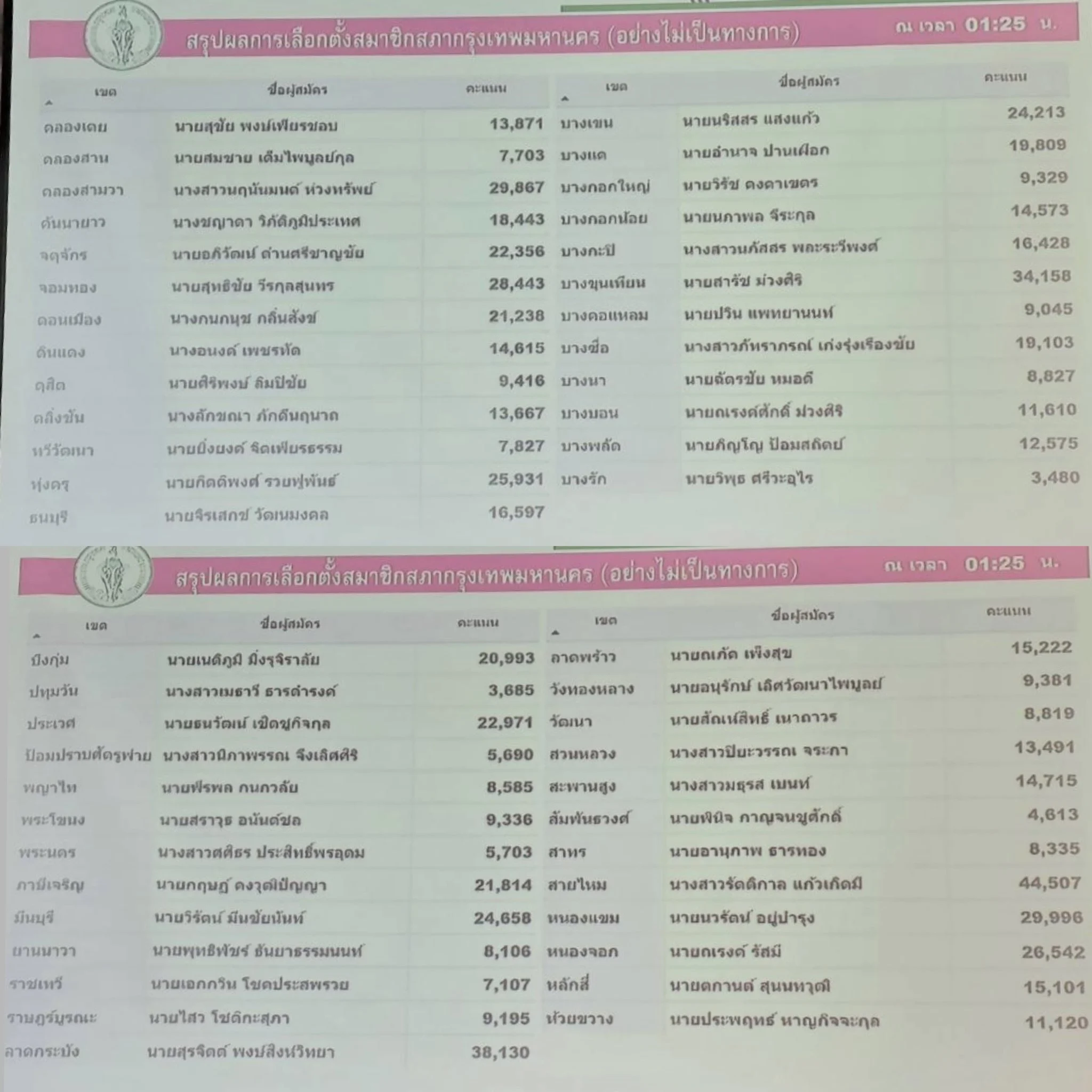 ส่วนผลการเลือกตั้ง ส.ก.อย่างไม่เป็นทางการ