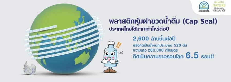 “ปัจจุบันประเทศไทยผลิตน้ำดื่มปีละ 7,000 ล้านขวด ใช้พลาสติกหุ้มฝาขวดน้ำดื่มมากถึงปีละ 2,600 ล้านชิ้น ความยาว 2.6 แสนกิโลเมตร หรือคิดเป็นความยาวรอบโลก 6.5 รอบ หากประเทศไทยเลิกใช้พลาสติกหุ้มฝาขวดสำเร็จจะช่วยลดปริมาณขยะถึงปีละ 520 ตัน”