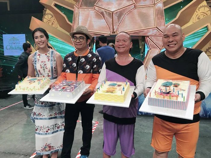 จากนั้นเจ้าของเค้กวันเกิดทั้ง 4 ท่าน ก็ร่วมเป่าเค้กวันเกิดด้วยกัน และในครั้งนี้ พี่ใหญ่ หม่ำ จ๊กมก ก็เป็นตัวแทนกล่าวอวยพร โดยบรรยากาศเต็มไปด้วยความอบอุ่น ทุกคนมีรอยยิ้ม สนุกสนาน