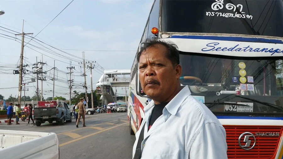 เบื้องต้นสอบถาม นายสมคิด อยู่สุข อายุ 59 ปี (คนขับรถบัส) เล่าว่า รถบรรทุกวิ่งแซงลงเนินมาด้วยความเร็ว พุ่งชนรถที่จอดอยู่บนถนน ขณะที่ตนขับรถบัส รับ-ส่ง พนักงานออกจากหน้าโรงงาน โชคดีที่ตนขับเบี่ยงหลบทัน รถได้รับความเสียหายไม่มาก ขณะที่เจ้าหน้าที่ตำรวจเร่งดำเนินการสอบสวนคนขับรถบรรทุกสิบล้อพ่วงคันดังกล่าวเพื่อมาดำเนินคดี และให้ชดใช้ค่าเสียหายรวมทั้งตรวจสอบกล้องวงจรปิด เพื่อเป็นหลักฐานประกอบดำเนินคดีต่อไป
