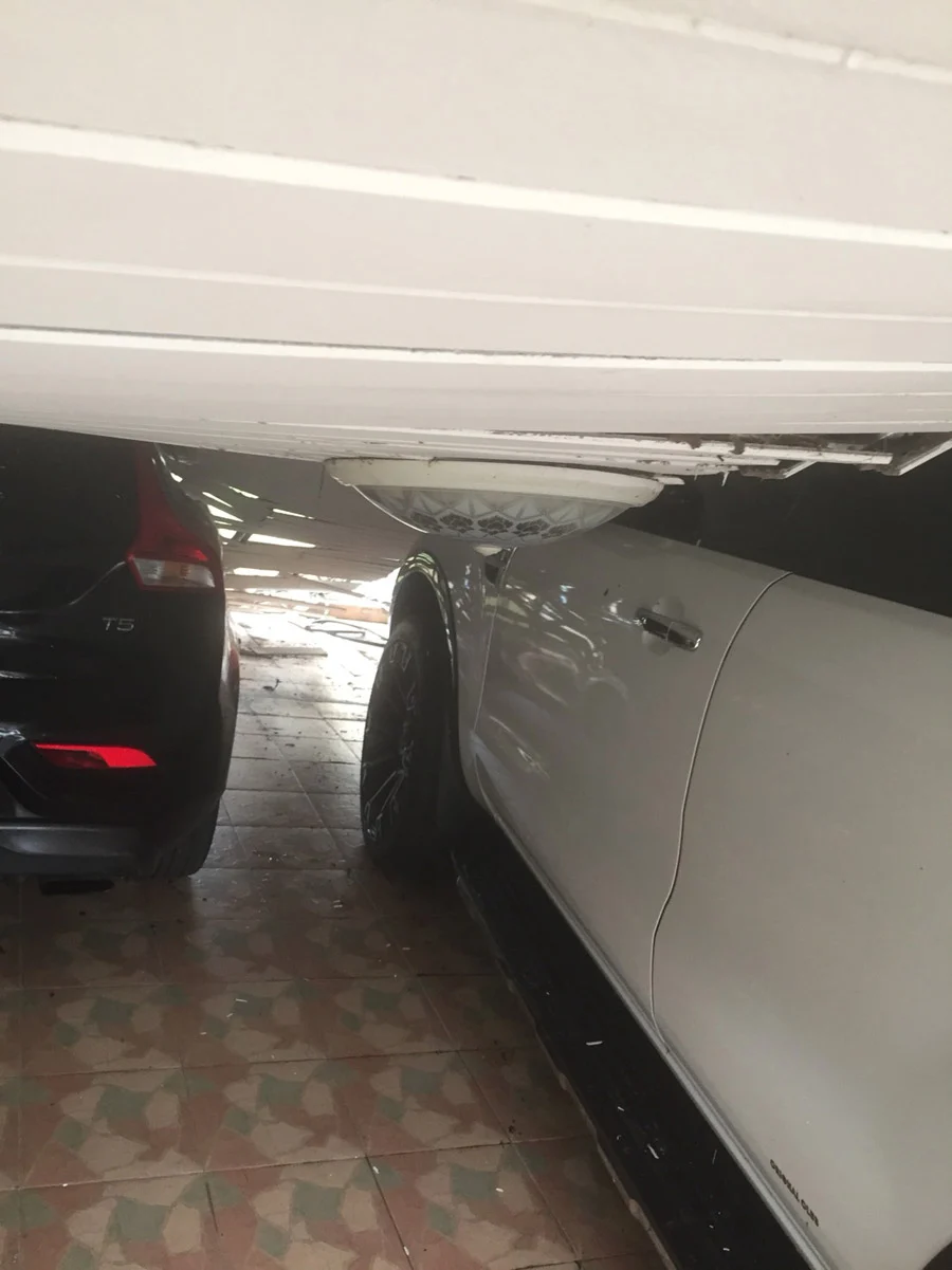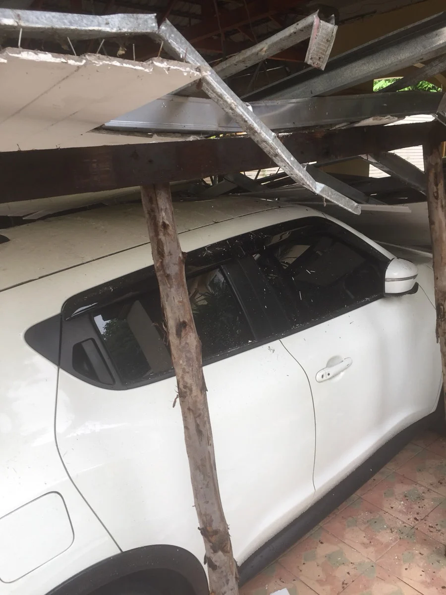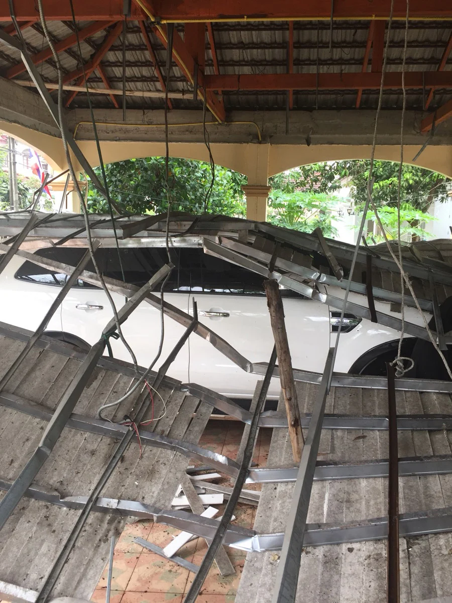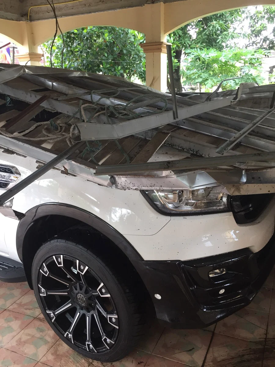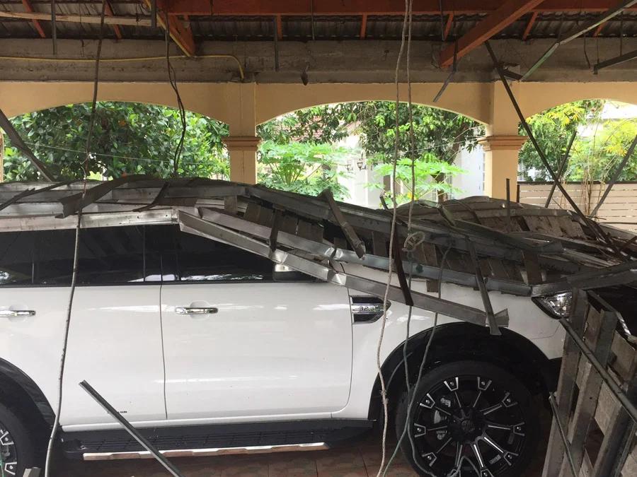 “ฝนตกหนัก หลังคาโรงรถถล่ม ทับรถที่บ้านสี่คันเลย แม่งเอ๋ยยยย ซวยจริงๆ กู สัสสสส” ก่อนจะลงอีกคลิปอีกมุมสภาพความเสียหายที่ยังกู้คืนไม่ได้ พร้อมแคปชั่นว่า “เศร้าใจ”
