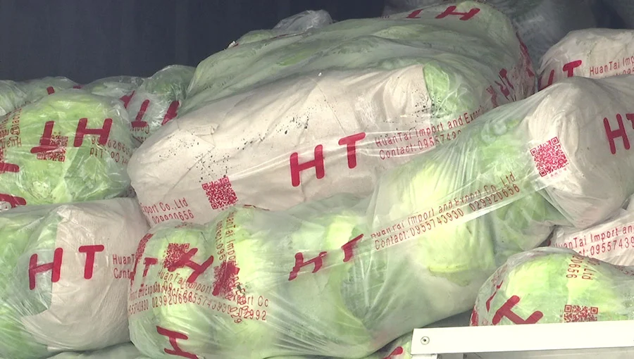 ผักกาดขาว กวางตุ้ง บรอกโคลี และผลไม้ต่างๆ ล้วนถูกนำเข้าจากจีนผ่านเส้นทางด่านโมฮาน จีนตอนใต้ มาด่านเชียงของ ที่เชียงราย เดินทาง 3 ชั่วโมง มาทุกวันนับร้อยตู้ ขณะที่กรมศุลกากร บอกว่า ผักและผลไม้เหล่านี้จะถูกนำไปผ่านพิธีการนำเข้าสินค้า บริเวณด่านศุลกากรเชียงของ ทั้งการตรวจเอ็กซเรย์สินค้าว่าเป็นไปตามเอกสารหรือไม่ พร้อมสุ่มตรวจหาสารตกค้างโดยกรมวิชาการก่อนปล่อยตู้สินค้า