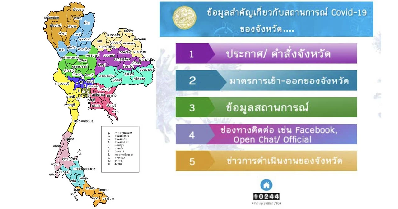 ส่งผลให้แต่ละจังหวัดออกคำสั่งและประกาศจังหวัดในการป้องกันการแพร่ระบาดของโควิด-19 ซึ่งอาจสร้างความสับสนให้กับผู้ที่ต้องการเดินทาง ล่าสุดศูนย์บริหารสถานการณ์แพร่ระบาดของโรคติดเชื้อไวรัสโคโรนา 2019 กระทรวงมหาดไทย ได้จัดทำและรวบรวมข้อมูลสำคัญๆ เกี่ยวกับโควิด-19 ไว้ทั้งหมด 77 จังหวัด ผ่านเว็บไซต์ www.moicovid.com ซึ่งเมื่อเปิดเข้าไปแล้วจะเป็นรูปแผนที่ประเทศไทย อยากทราบว่าจังหวัดไหนมีประกาศหรือคำสั่งอย่างไรให้คลิปไปที่จังหวัดนั้นๆ ระบบจะแสดงหัวข้อสำคัญๆ ดังนี้