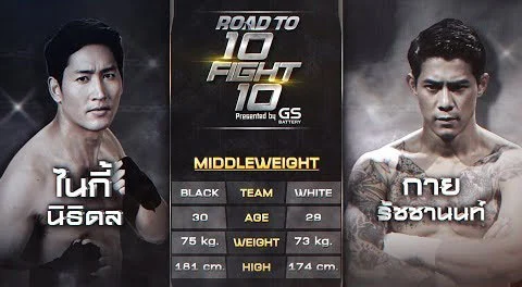 สัปดาห์หน้า ห้ามพลาด ! คู่ชกคู่ที่ 9 วันจันทร์ที่ 5 ส.ค. 62 เตรียมพบกับ “ไนกี้ นิธิดล” (ทีมดำ) ปะทะ “กาย รัชชานนท์” (ทีมขาว) ในศึก “10 Fight 10 Presented by GS BATTERY” ได้ในเวลา 20.15 น. ทางช่องเวิร์คพอยท์ หมายเลข 23 เท่านั้น !