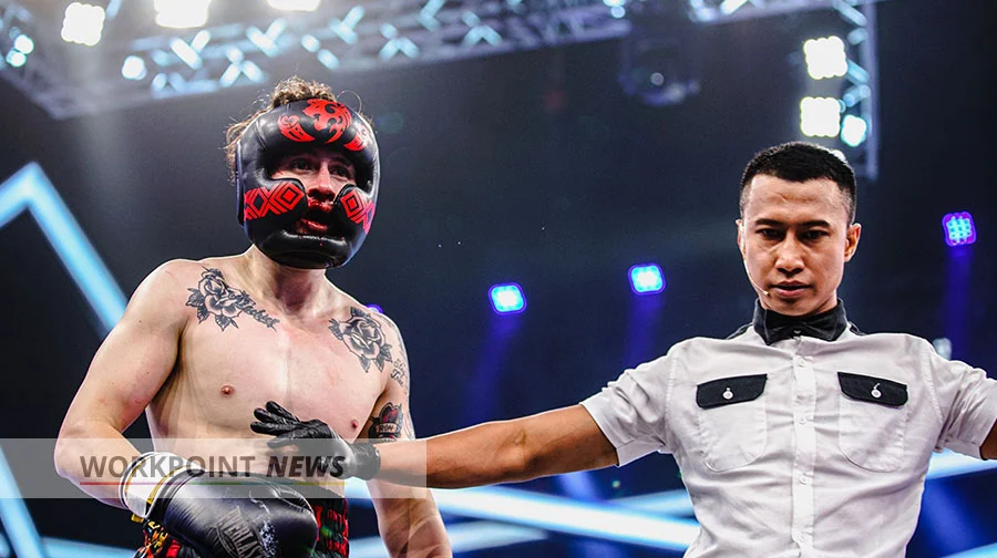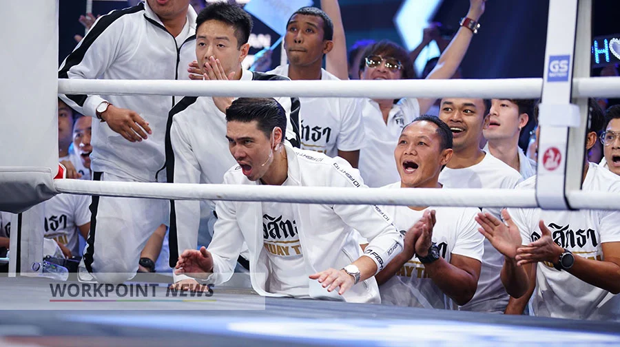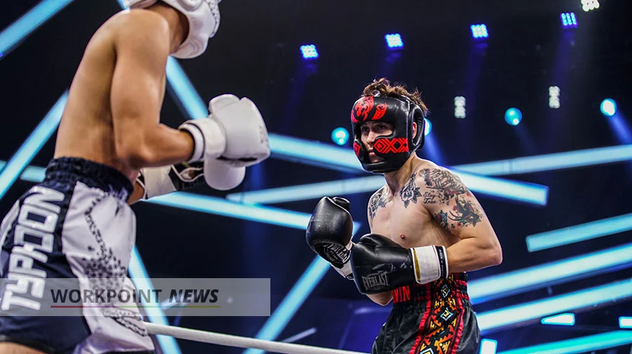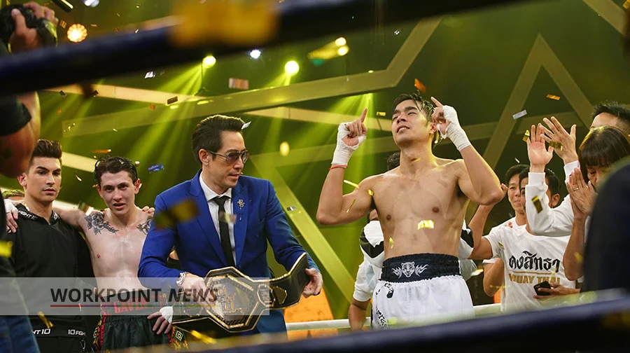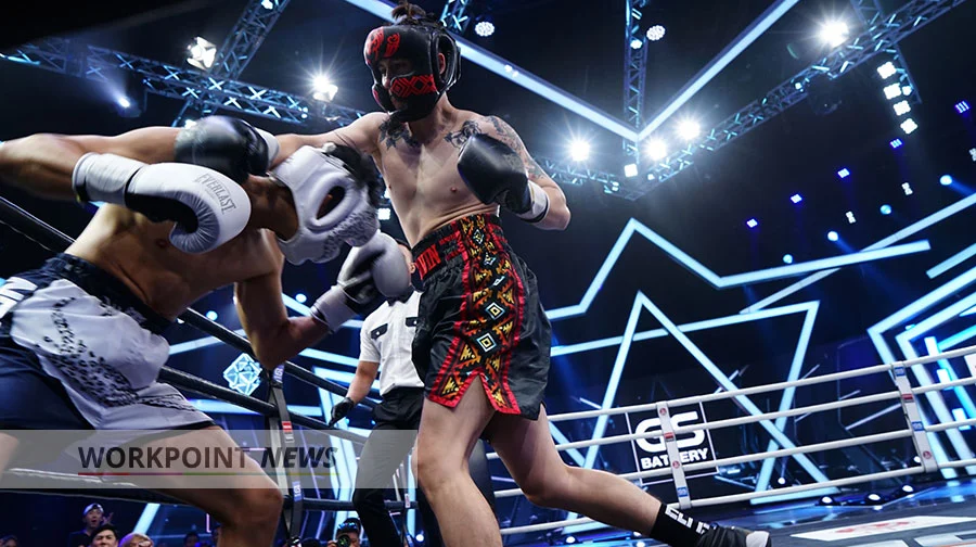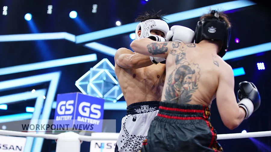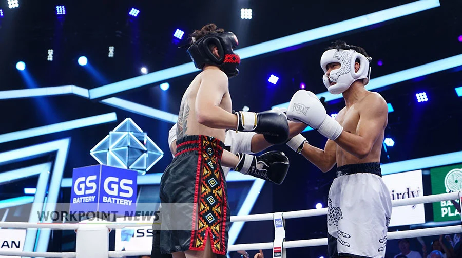ศึกนักชกหน้าหล่อคู่ที่ 8 “ไต้ฝุ่น กนกฉัตร” (ทีมขาว) ชนะน็อก “กวินท์.ดี” (ทีมดำ) ยกสาม ส่งผลทีมขาวแต้มนำลิ่วเป็น 16:5