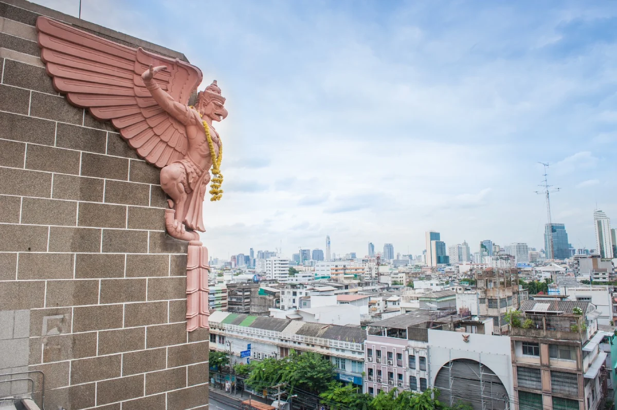 ใครมีแพลนจะไปเก็บภาพที่ไปรษณีย์กลางบางรัก แล้วไม่ได้ขึ้นไปบนจุดสูงสุดของอาคารต้องบอกว่าเหมือนมาไม่ถึง เพราะบนดาดฟ้าของอาคารคือที่ที่เราจะได้พบกับความอันซีนของรูปปั้นครุฑยุดแตรงอนขนาดใหญ่ 3 เท่าของคนจริง