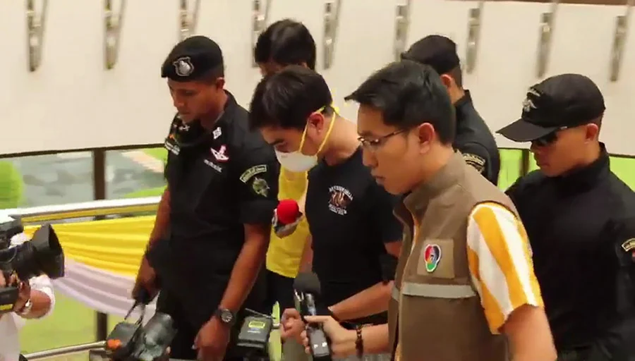 วันที่ 24 มิ.ย.2562 พล.ต.อ.เฉลิมเกียรติ ศรีวรขาน รอง ผบ.ตร.พร้อม พล.ต.ท.ชินภัทร สารสิน ผบช.ปส.และเจ้าหน้าที่ตำรวจปราบปรามยาเสพติด (ปส.) คุมตัวนายกันต์ธร แก้วกระจ่าง หรือมิว อายุ 28 ปี และนางสาวธาริณี ขาวบัณฑิต อายุ 23 ปี ชาว จ.พังงา ทั้ง 2 เป็นผู้ต้องหาตามหมายจับคดียาเสพติด มาสอบปากคำพร้อมขยายผลที่กองบัญชาการตำรวจปราบปรามยาเสพติด หลังจับกุมผู้ต้องหาทั้ง 2 คนได้ที่ได้ที่จุดรับส่งผู้โดยสารท่าเรือลมพระยา ภายในบริเวณท่าเรือเกาะพะงัน หมู่ 1 ต.เกาะพะงัน อ.เกาะพะงัน จว.สุราษฏร์ธานี