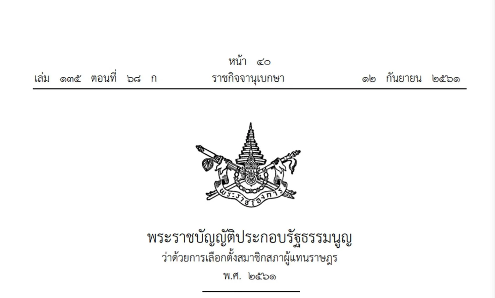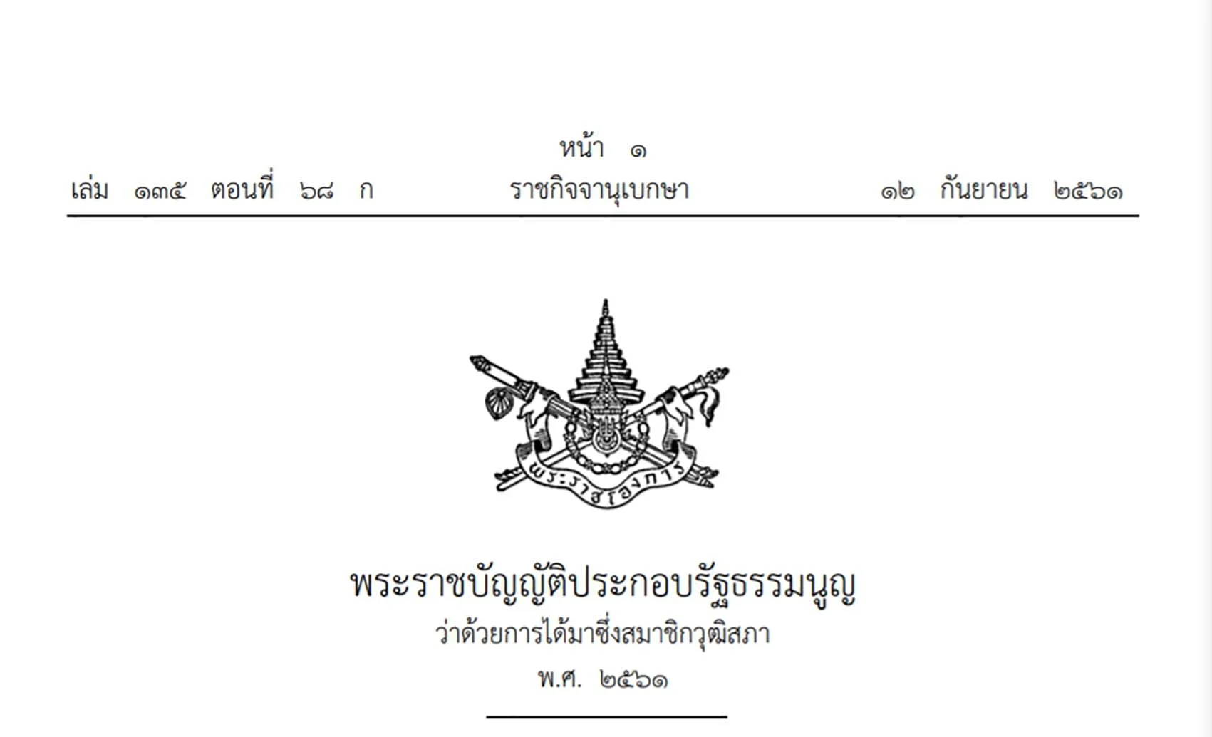 12 ก.ย. 2561 ราชกิจจานุเบกษา ลงประกาศพระราชบัญญัติประกอบรัฐธรรมนูญ 2 ฉบับ ที่ได้รับการโปรดเกล้าฯ คือ