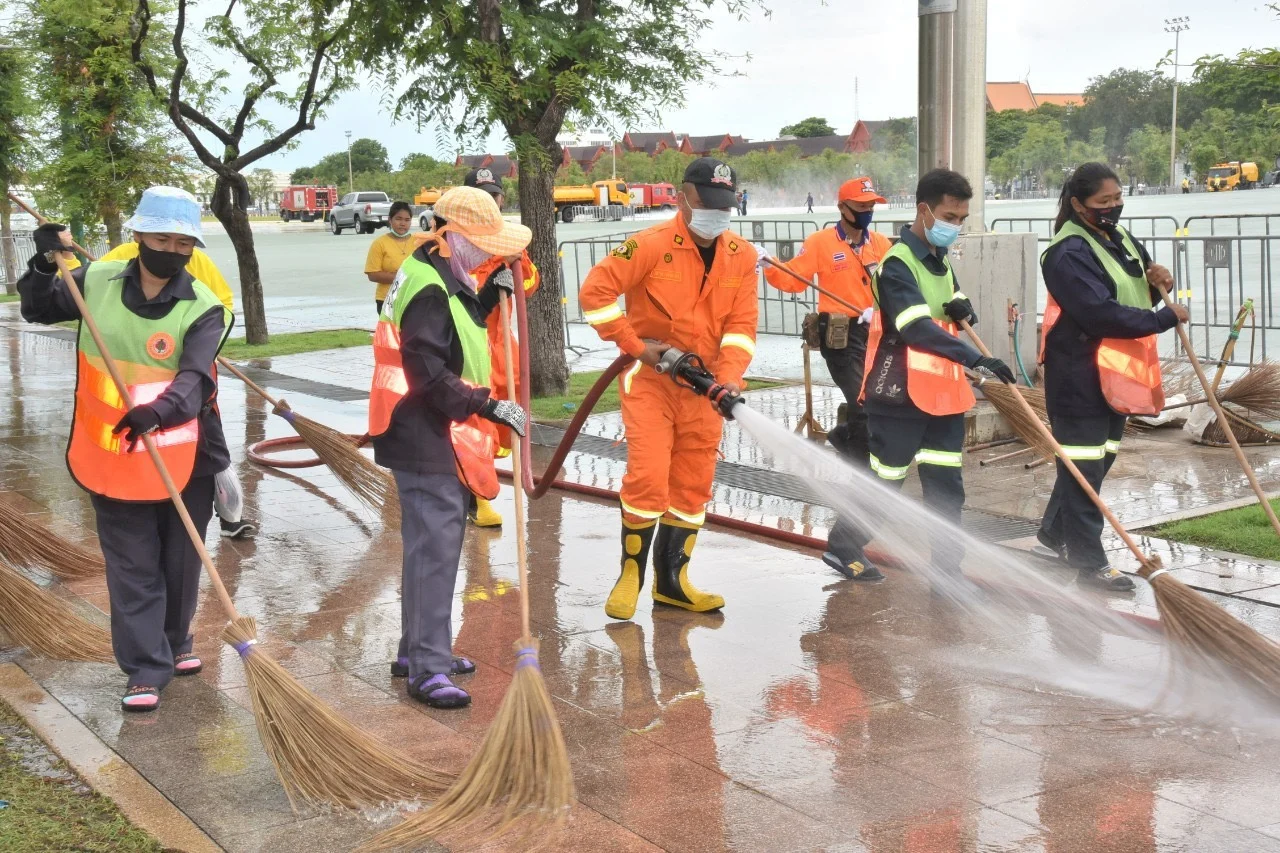 ในช่วงเวลาดังกล่าวได้ขอความร่วมมือประชาชนออกจากพื้นที่เป็นการชั่วคราวเพื่อความสะดวกในการปฏิบัติงานของเจ้าหน้าที่ หลังจากนั้น สำนักสิ่งแวดล้อม สำนักป้องกันและบรรเทาสาธารณภัย สำนักการโยธา สำนักการระบายน้ำ สำนักงานเขตพระนคร และจิตอาสาพระราชทาน นำอุปกรณ์ รถฉีดน้ำแรงดันสูง และรถบรรทุกน้ำ ล้างทำความสะอาด เก็บขยะ พลาสติกปูนอน และฉีดน้ำล้างผิวการจราจรโดยรอบ คาดว่าจะแล้วเสร็จภายในวันนี้