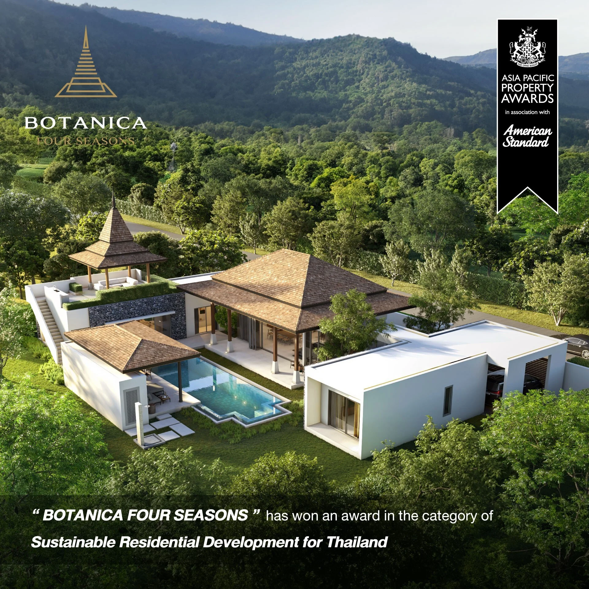 - โครงการ BOTANICA FOUR SEASONS ได้รับรางวัล “Sustainable Residential Development for Thailand” พูลวิลล่าบนทำเลสุดสงบแสนร่มรื่นแห่งนี้ โดดเด่นด้วยการออกแบบที่มอบการอยู่อาศัยที่กลมกลืนกับธรรมชาติโดยรอบ นอกจากนี้ โบทานิก้า ลักซูรี่ วิลล่า ยังดำเนินงานอย่างใกล้ชิดกับชุมชนในพื้นที่เพื่อร่วมสร้างสรรค์สิ่งแวดล้อมที่ยั่งยืน