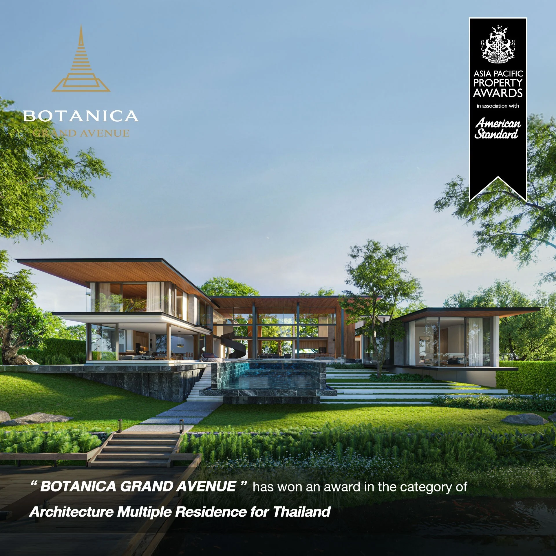 - โครงการ BOTANICA GRAND AVENUE ได้รับรางวัล “Architecture Multiple Residence for Thailand” เมกะโปรเจ็กต์แบบมิกซ์ยูสที่มีทั้งพูลวิลล่า คอนโดมิเนียม และคลับเฮาส์เหนือระดับแห่งนี้ เป็นอีกหนึ่งผลงานแห่งความภาคภูมิใจของทีมสถาปนิกและดีไซเนอร์ของโบทานิก้า ลักซูรี่ วิลล่า ที่ร่วมรังสรรค์ที่อยู่อาศัยเปี่ยมฟังก์ชันและคงไว้ซึ่งความเรียบหรูทันสมัยในแบบฉบับของแบรนด์