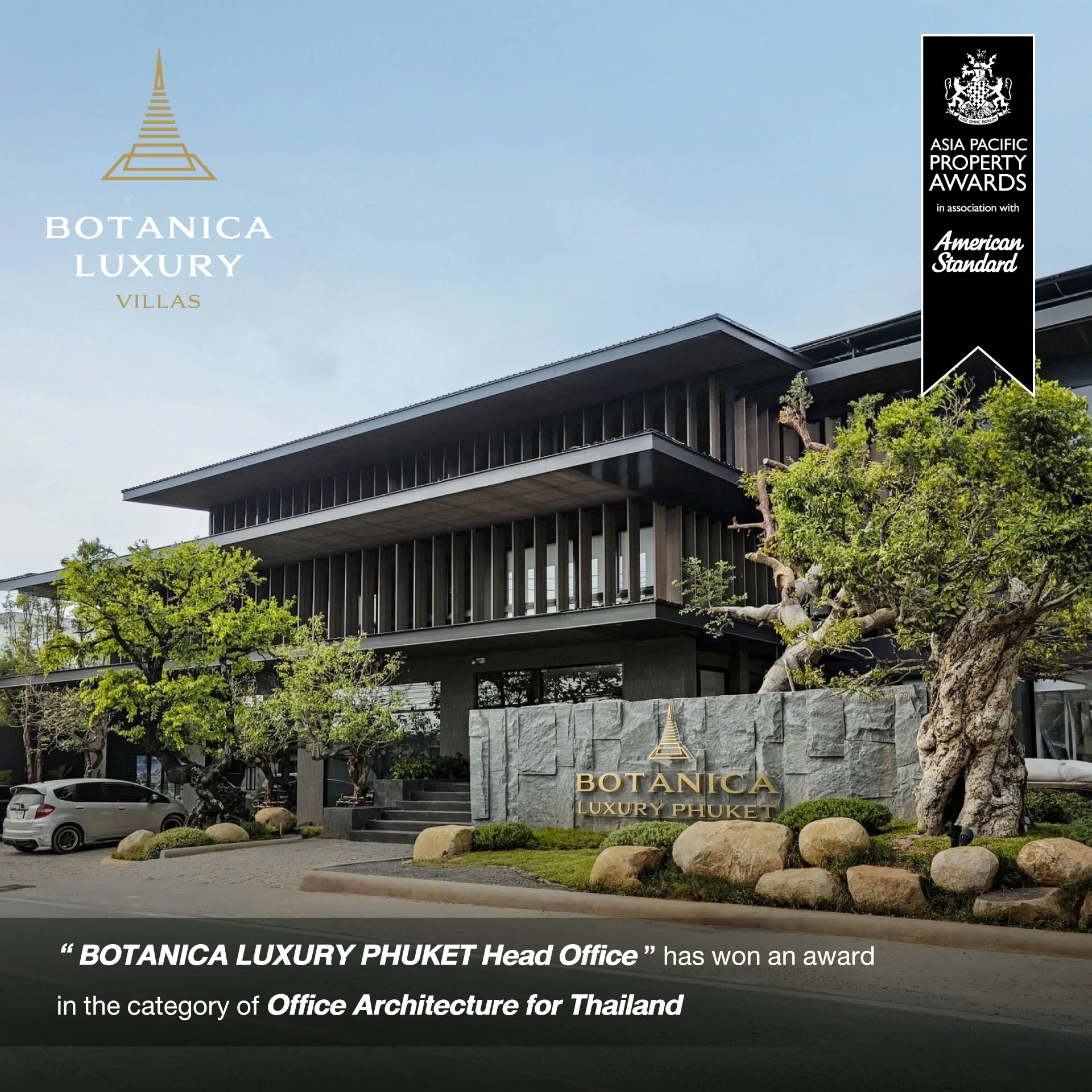 - BOTANICA LUXURY PHUKET Head Office สำนักงานใหญ่ของโครงการ ได้รับรางวัล “Office Architecture for Thailand” รางวัลสุดพิเศษที่เชิดชูการออกแบบออฟฟิศยอดเยี่ยม สะท้อนถึงความตั้งใจของบริษัทในการสร้างสิ่งแวดล้อมที่ดีและมอบสิ่งอำนวยความสะดวกที่ส่งเสริมความสุขของพนักงาน ผู้เป็นแรงขับเคลื่อนความสำเร็จของทุกโครงการ