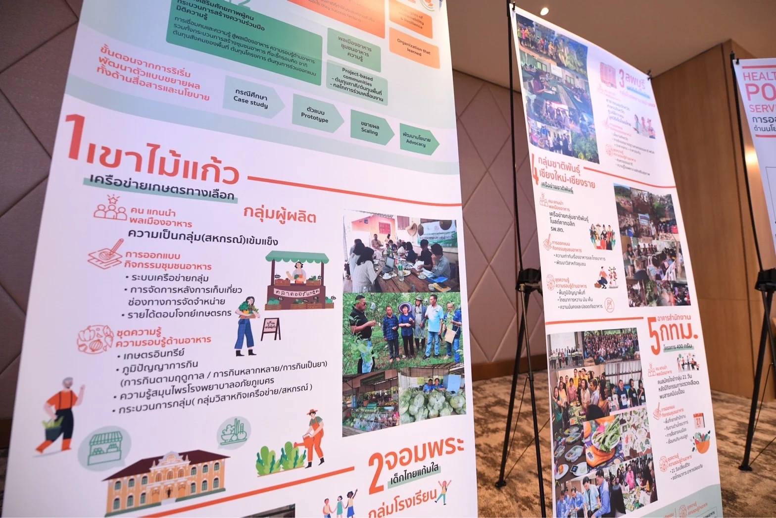 นอกจากนี้ ยังดำเนินการพัฒนารูปธรรมและต้นแบบการจัดการด้านอาหารในระดับพื้นที่ ได้แก่ โรงเรียนอาหารสุขภาวะ โรงเรียนอ่อนหวาน โรงพยาบาลสีเขียว โรงพยาบาลลดหวานมันเค็ม ขับเคลื่อนให้เกิดการทำเกษตรกรรมที่ยั่งยืน การทำเกษตรกรรมในพื้นที่เขตเมือง สร้างช่องทางจำหน่ายผลผลิตที่ปลอดภัยในรูปแบบตลาดสีเขียว การพัฒนาและจัดการอาหารริมบาทวิถีให้มีคุณภาพและมีคุณค่าทางโภชนาการ รวมทั้งการผลักดันนโยบายและมาตรการที่ส่งผลต่อการสร้างสภาพแวดล้อมด้านอาหารและโภชนาการที่ดี การสื่อสารประเด็นอาหารต่อสังคมเพื่อกระตุ้นให้เกิดการรับรู้ของสังคมในวงกว้าง