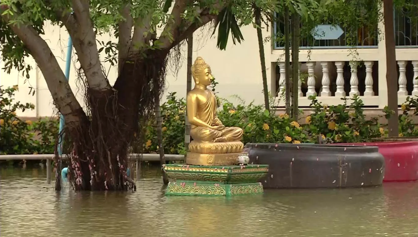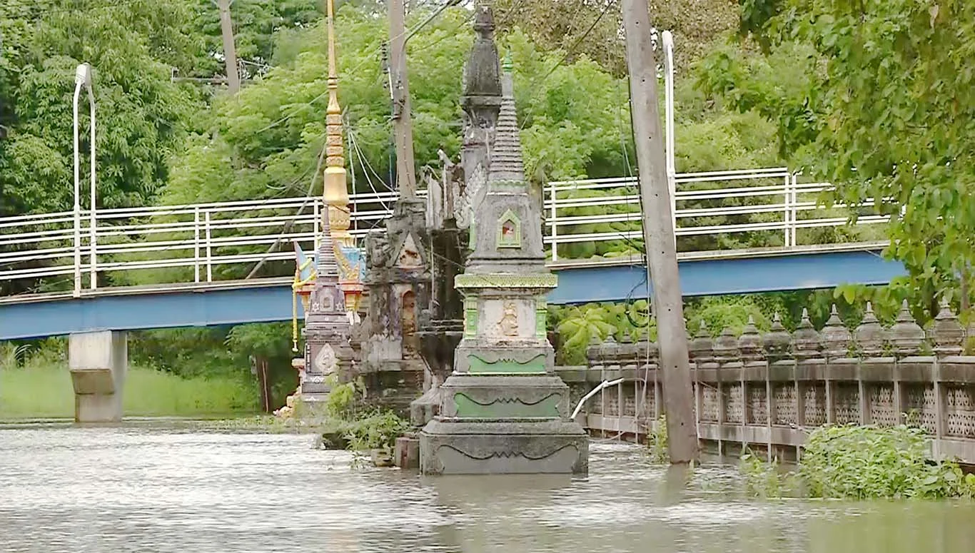 ประเด็นคือ- แม่น้ำยมยังเพิ่มปริมาณสูงขึ้น แม่น้ำไหลท่วมบริเวณวัดไผ่ท่าโพเหนือ อ.โพธิ์ประทับช้าง จ.พิจิตร พระอุโบสถถูกน้ำท่วมขัง ไม่สามารถประกอบพิธีทางศาสนาได้