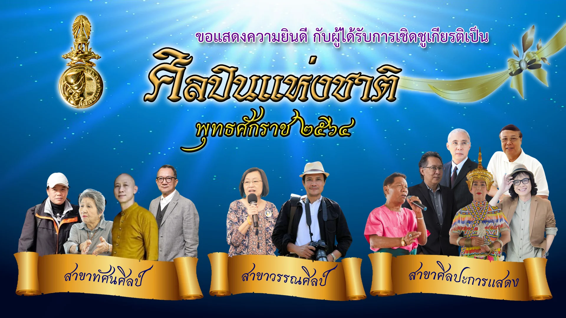 วันที่ 27 เม.ย. 2565 นายอิทธิพล คุณปลื้ม รัฐมนตรีว่าการกระทรวงวัฒนธรรม รองประธานกรรมการวัฒนธรรมแห่งชาติ ได้แถลงผลการคัดเลือกศิลปินแห่งชาติ พุทธศักราช 2564 ภายหลังการประชุมคณะกรรมการวัฒนธรรมแห่งชาติ (กวช.) ครั้งที่ 4/2565 โดยมีนายวิษณุ เครืองาม รองนายกรัฐมนตรี ประธานกรรมการวัฒนธรรมแห่งชาติ มีบุคคลที่ได้รับการยกย่องเชิดชูเกียรติ จำนวน 12 คน ดังนี้