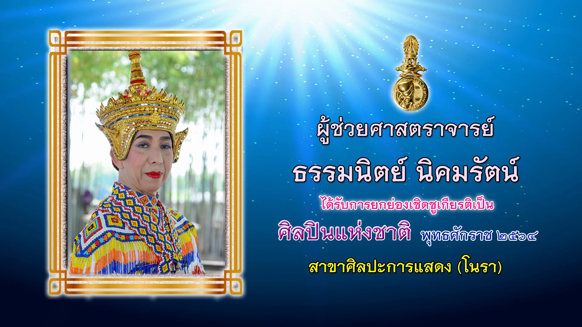 1. ผู้ช่วยศาสตราจารย์ธรรมนิตย์ นิคมรัตน์ (โนรา)