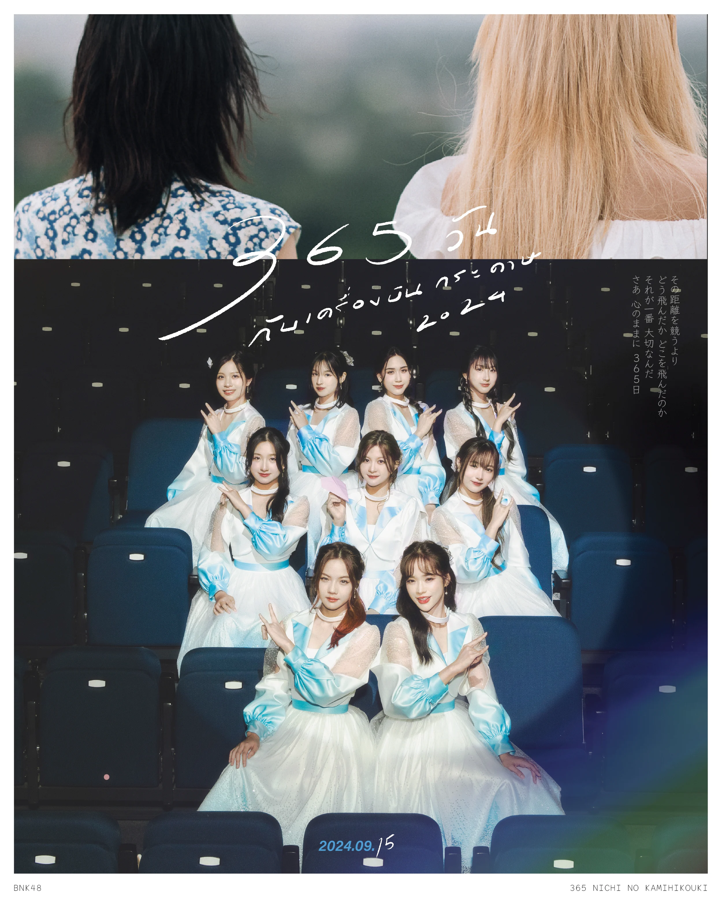 หยิบเพลงฮิตกลับมาสร้างแรงบันดาลใจอีกครั้ง สำหรับเพลง “365 วันกับเครื่องบินกระดาษ (2024 ver.)” หรือ 365 Nichi no Kamihikouki ซึ่งถ่ายทอดผ่านเมมเบอร์ปัจจุบันของ BNK48 จากค่าย iAM ที่แฟนๆ ได้มีส่วนร่วมในการโหวตและคัดเลือกเมมเบอร์ด้วยตัวเองเวอร์ชั่นใหม่ 2024 นำทีมโดยเซ็นเตอร์ (ป๊อปเป้อ) พิณญาดา จึงกาญจนา, (เอิร์น) วชิราพร พัฒนพานิช, (อีฟ) อิสรีย์ ทวีกุลพาณิชย์, (เอ็มมี่) อรณิชชา พรหมสุภา, (แจนรี่) กัลยารัตน์ ปั้นพิพัฒน์, (ซัทจัง) สวิชญา ขจรรุ่งศิลป์, (สาวน้อย) พิชญ์สินี อิทธิรัตนะโกมล (จิว) ณัฐญาฐ์ บวรรัตนศิลป์ และ(เกลญ่า) นภภัค โชคคุณานันทกุล