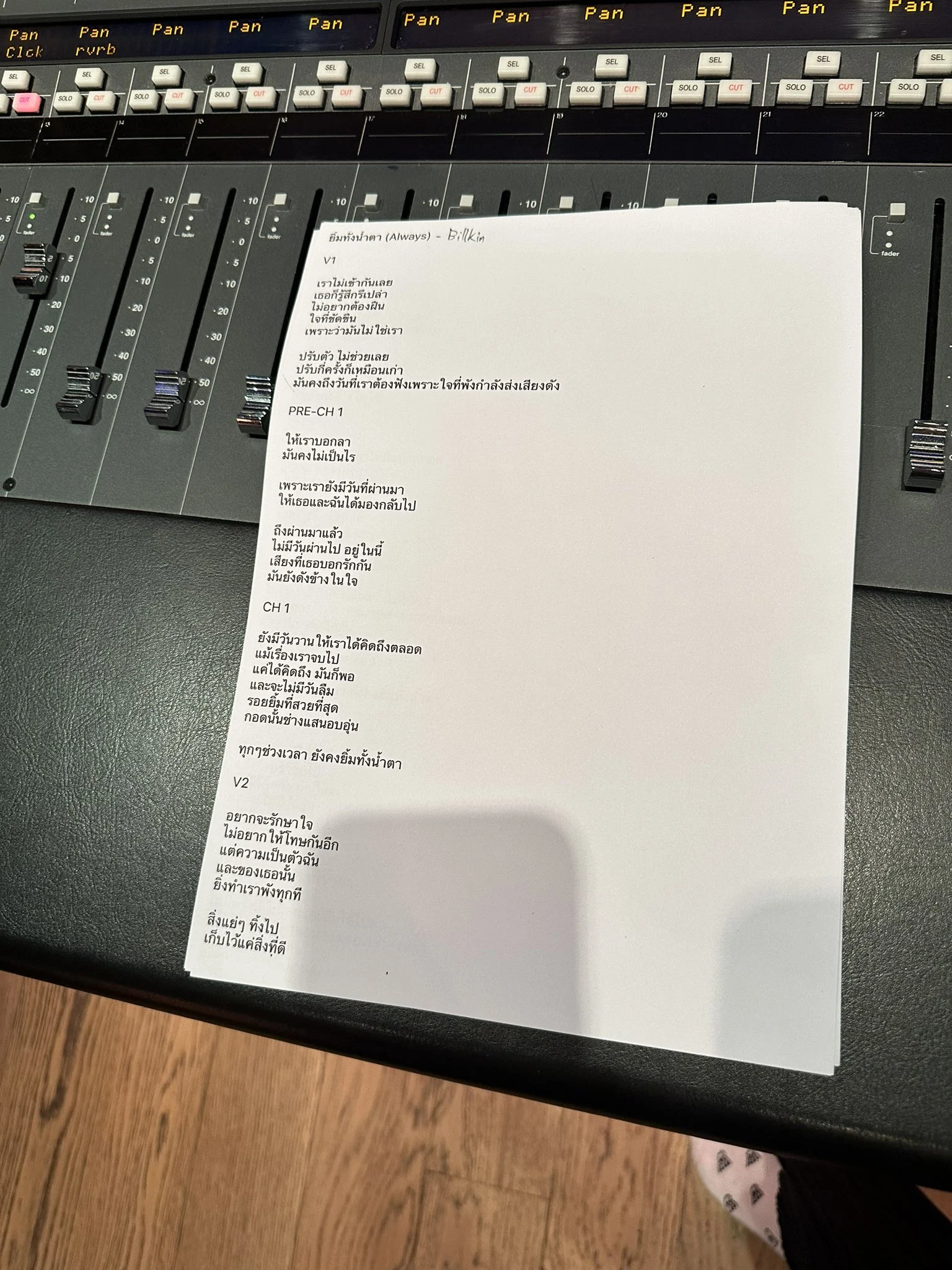 พอไมโล Compose เพลง ขึ้น Demo แบบมีทำนองและดนตรีมา เราก็ยังทึ่งเหมือนเคยว่า “ทำไมมันทำทำนองดีจังวะ?” ฮ่าๆๆๆ เรื่องดนตรี เราไม่เคยสงสัยในตัวอยู่แล้ว จากนั้น เราเริ่มเขียนเนื้อใส่ทำนองไมโล มีแก้เนื้อ & ทำนองกันประมาณ 3-4 ฉบับ สุดท้ายก็ถึงฉบับสุดท้าย