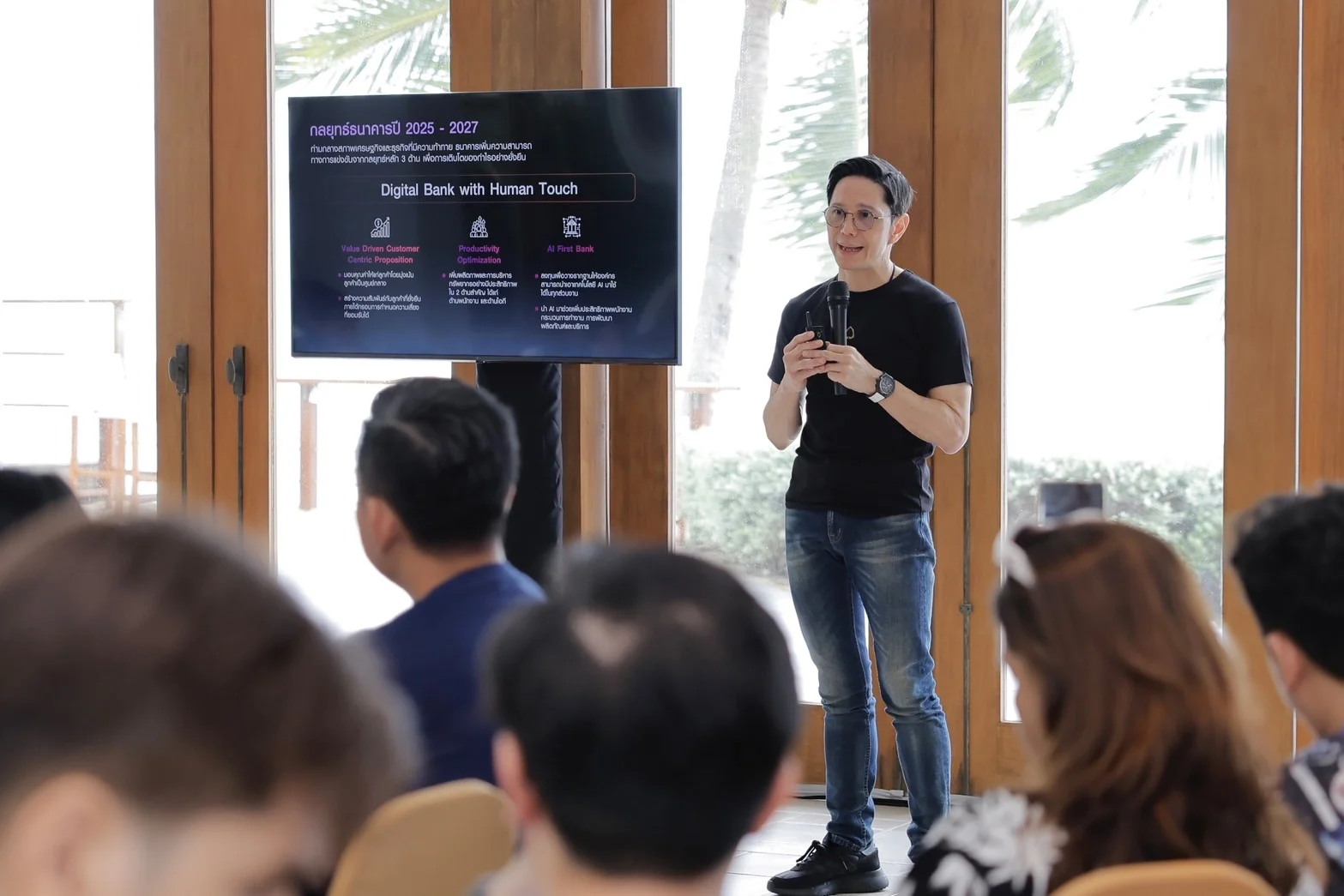 มองไปข้างหน้า เชื่อว่า มิติของการเป็นธนาคารที่ปรับใช้ AI เต็มที่เลยจะเกิดขึ้น การแข่งขันที่จะเกิดขึ้นอย่างมากใน Virtual Banking ซึ่งจะมีผู้เข้ามาสู่ในสนามนี้อย่างเป็นทางการครั้งแรกในปี 2569 ธนาคารก็พร้อมจะแข่งกับเขา