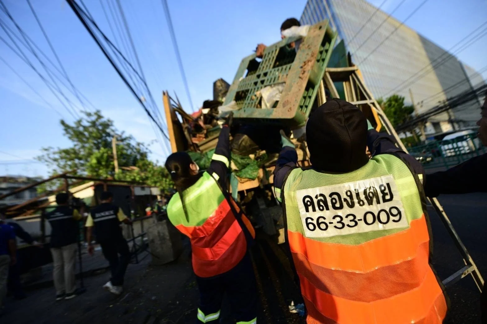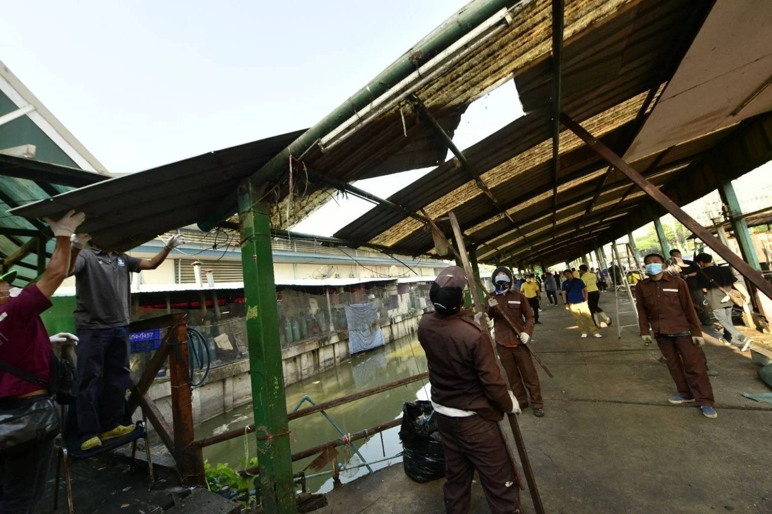 นายจักกพันธุ์ ผิวงาม รองผู้ว่าราชการกรุงเทพมหานคร ลงพื้นที่ตรวจการยกเลิกพื้นที่ทำการค้า และติดตามรื้อถอนโครงสร้างและส่วนประกอบอื่นๆ บริเวณตลาดริมคลองหัวลำโพง (ตลาดลาว) ถนนพระรามที่ 4 เขตคลองเตย