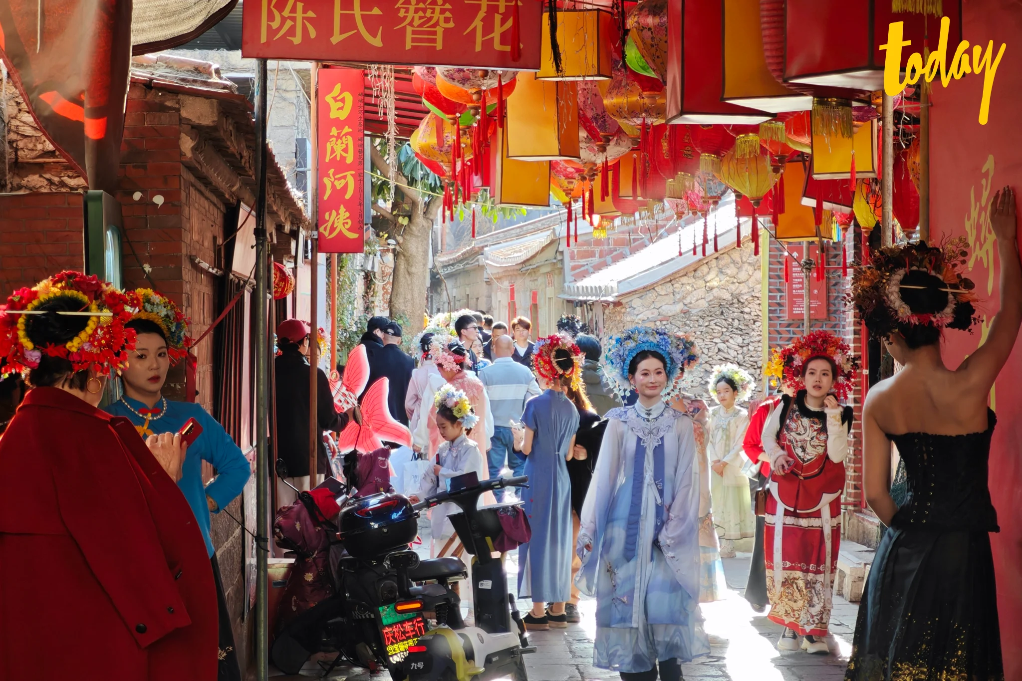 มงกุฎดอกไม้ทรงประณีต คือเอกลักษณ์ของผู้หญิงซวินปู่ ที่ถูกสืบทอดมากว่า 800 ปี ถือเป็นสัญลักษณ์ของความงาม ความสุข และมีโชคดีในชีวิต หมู่บ้านเปลือกหอย ‘ซวินปู่’ จึงถูกยกให้เป็น “พิพิธภัณฑ์ที่มีชีวิต” แห่งเมืองท่าโบราณ ‘เฉวียนโจว’ อย่างแท้จริง
