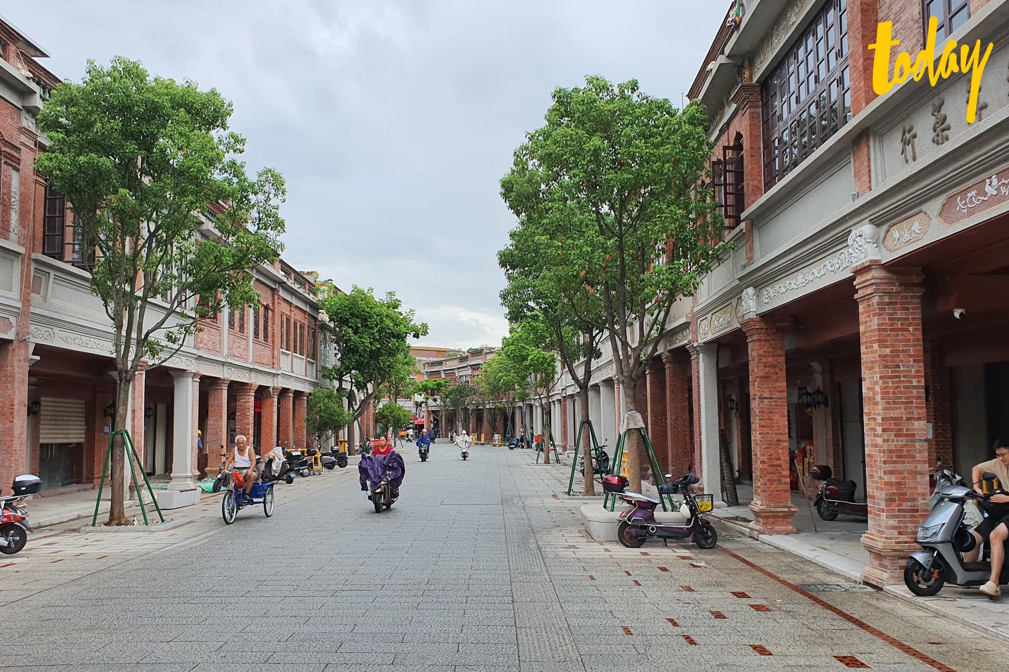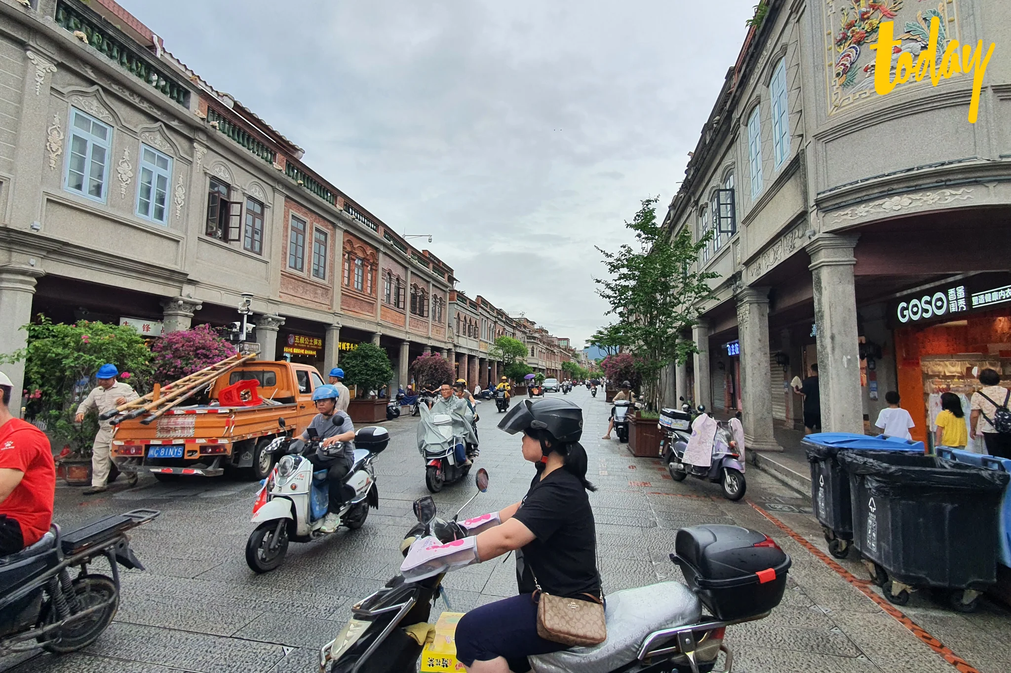 ที่แรกที่สำนักข่าวทูเดย์ได้มีโอกาสมาเยี่ยมชมคือ ย่านเมืองเก่าบริเวณถนนจงซาน ที่มีจุดเด่นคืออาคารตึกแถวที่สร้างในแบบสถาปัตยกรรมแบบจีนตอนใต้ หรือที่เรียกว่า ‘ฉวี่โลว้’ ในภาษาจีนกลาง ซึ่งเป็นสถาปัตยกรรมที่ต่อมาได้กลายเป็นต้นแบบของอาคารแบบ ชิโน-โปรตุกีส ที่พบเห็นได้ในจังหวัดภูเก็ตหรือสิงคโปร์ ซึ่งมีชาวฮกเกี้ยนจากมณฑลฝูเจี้ยนเดินทางมาตั้งถิ่นฐานเป็นจำนวนมาก