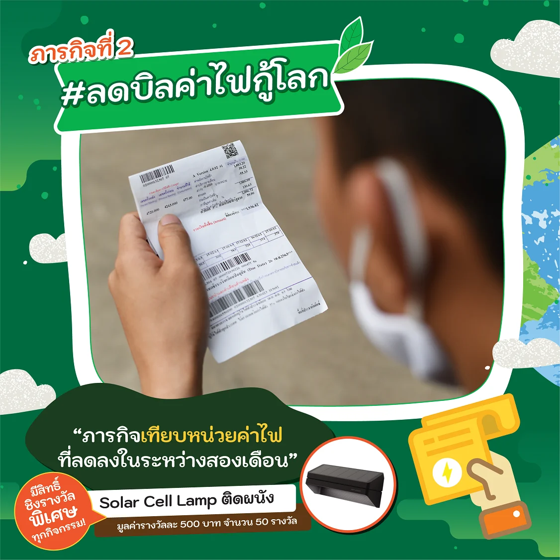 ภารกิจที่ 2 : #ลดบิลค่าไฟกู้โลก
