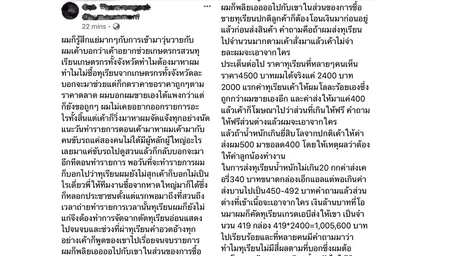 พิธีกรชื่อดัง ณวัฒน์ อิสระไกรศีล โต้ประเด็นดราม่าทุเรียนยะลา เผยเจ้าของสวนไม่ซื่อสัตย์ต่อลูกค้า ยืนยันเดินหน้าทำประชาสัมพันธ์ช่วยเหลือจังหวัดยะลาต่อไป