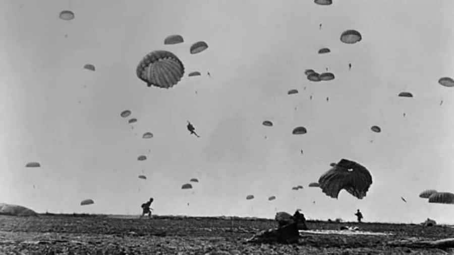 พลร่มสัมพันธมิตร ขณะโดดร่มลงหลังแนวรบฝ่ายเยอรมันในฝรั่งเศส