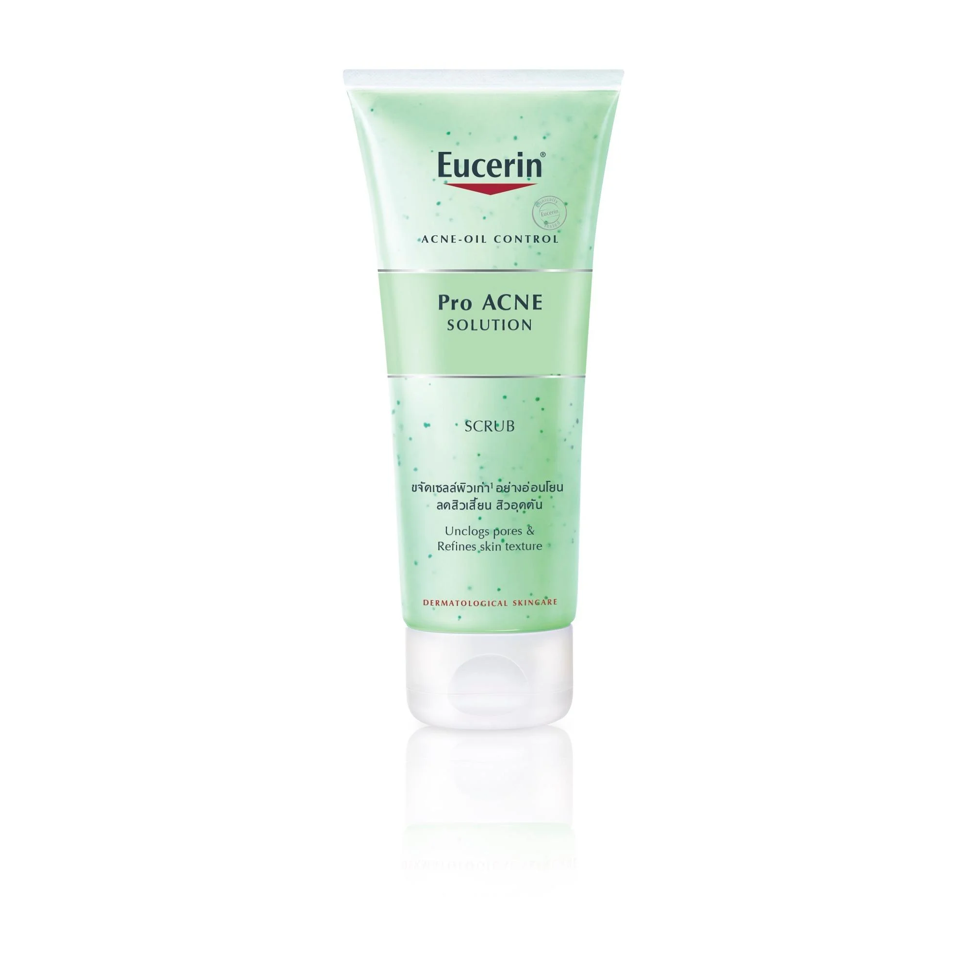 Eucerin Pro Acne Solution Scrub (810 บาท) สครับที่ผสานเม็ดบีดกลมละเอียดช่วยขจัดสิ่งสกปรกพร้อมป้องกันการเกิดสิวอย่างอ่อนโยน