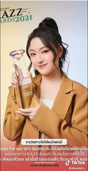 เมื่อวันที่ 10 ม.ค.2565 ที่ผ่านมา ‘อ๊ะอาย 4EVE’ หรือ อ๊ะอาย-กรณิศ เล้าสุบินประเสริฐ น้องเล็กสุดน่ารัก ที่มีดาเมจรุนแรงแห่งวง 4EVE ได้ลงคอนเทนต์แนะนำตัวเองพร้อมเล่าเส้นทางในวงการบันเทิงของเธอตลอดระยะเวลา 10 ปีที่ผ่านมาให้เหล่าแฟน ๆ ได้รับชมผ่าน TikTok ซึ่งปัจจุบันมียอดผู้ติดตามถึง 901.8K เพียงแค่ 3 นาที ที่การันตรีความสามารถ และรู้จักเธอได้มากขึ้น