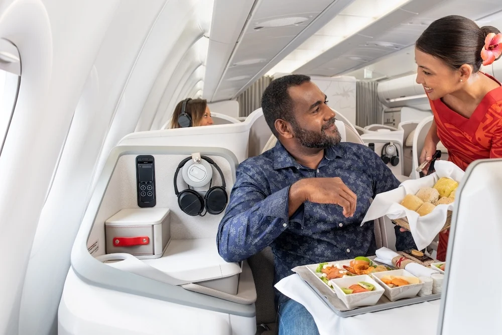 • ชั้นธุรกิจ (Business Hibiscus Class): ห้องโดยสารดีไซน์โมเดิร์น พร้อมที่นั่งแบบ fully-flat bed ทุกที่นั่งและทางเดินเข้า–ออกแบบตรง ให้ความเป็นส่วนตัวสูง เหมาะสำหรับนักธุรกิจและนักเดินทางที่ต้องการพักผ่อนเต็มที่ก่อนถึงปารีสหรือกลับกรุงเทพฯ มาพร้อมจอ LED HD ขนาดใหญ่ ระบบความบันเทิงครบ และสิทธิใช้เลานจ์สนามบินทั้งที่นูเมอา กรุงเทพฯ และปารีส
