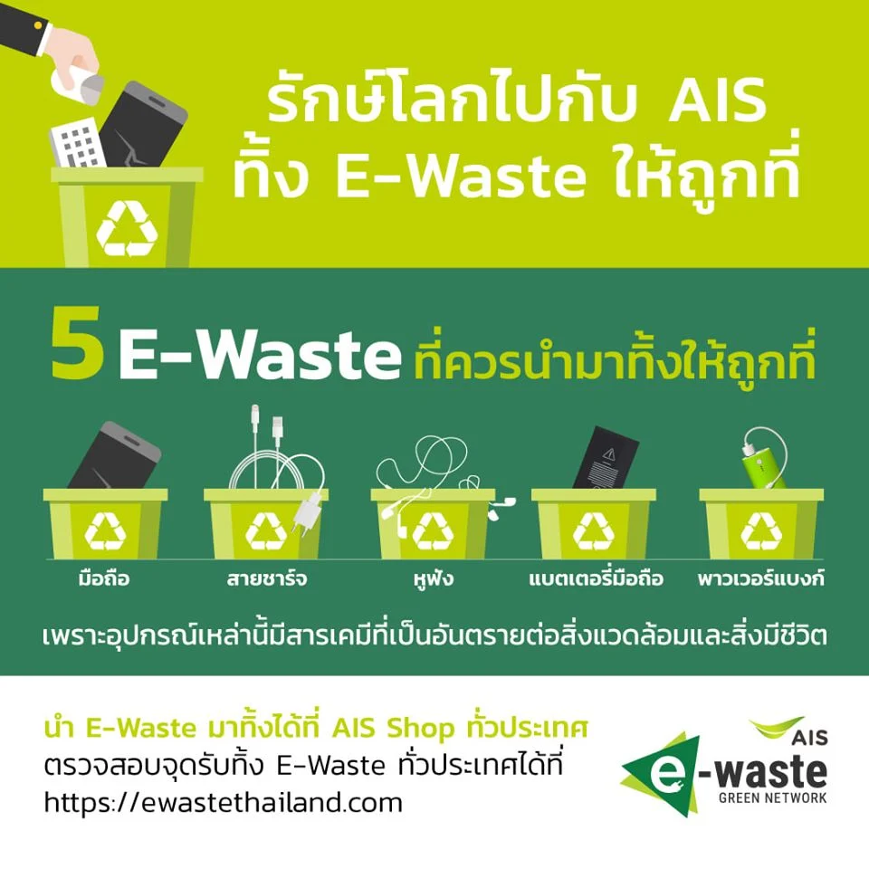 เอไอเอสรับทิ้งขยะอิเล็กทรอนิกส์ 5 ประเภท โทรศัพท์มือถือ-แบตเตอรี่-สายชาร์จ-พาวเวอร์แบงก์-หูฟัง พร้อมจับมือ บ.เทส จัดการขยะถูกวิธี ทั้งนำกลับมาใช้ประโยชน์ใหม่-เกิดมูลค่า