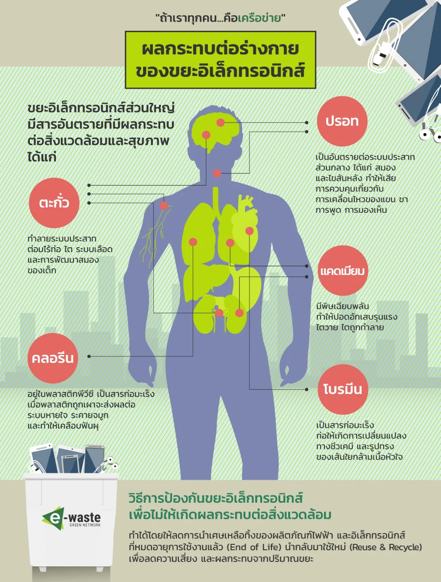 แต่ยังมีขยะอีกประเภทที่หลายคนอาจมองข้าม และกำลังเป็นปัญหาใหญ่ หากไม่ได้รับการกำจัดอย่างถูกวิธี และถ้าปล่อยทิ้งไว้นานอาจจะก่อให้เกิดผลกระทบต่อชีวิตและสิ่งแวดล้อมในระยะยาว นั่นคือ ขยะอิเล็กทรอนิกส์ หรือ E-Waste (อีเวสต์) อาทิ โทรศัพท์มือถือ, หูฟัง, สายชาร์จแบต ฯลฯ เนื่องจากมีสารอันตรายหลากหลายอยู่ในอุปกรณ์ ซึ่งจำเป็นต้องแยกทิ้ง แต่ที่ผ่านมาประชาชนจำนวนมากไม่ทราบว่าต้องแยกออกจากขยะจำพวกพลาสติก ขณะที่อีกจำนวนไม่น้อยก็ไม่ทราบว่าจะนำไปทิ้งได้ที่ไหน