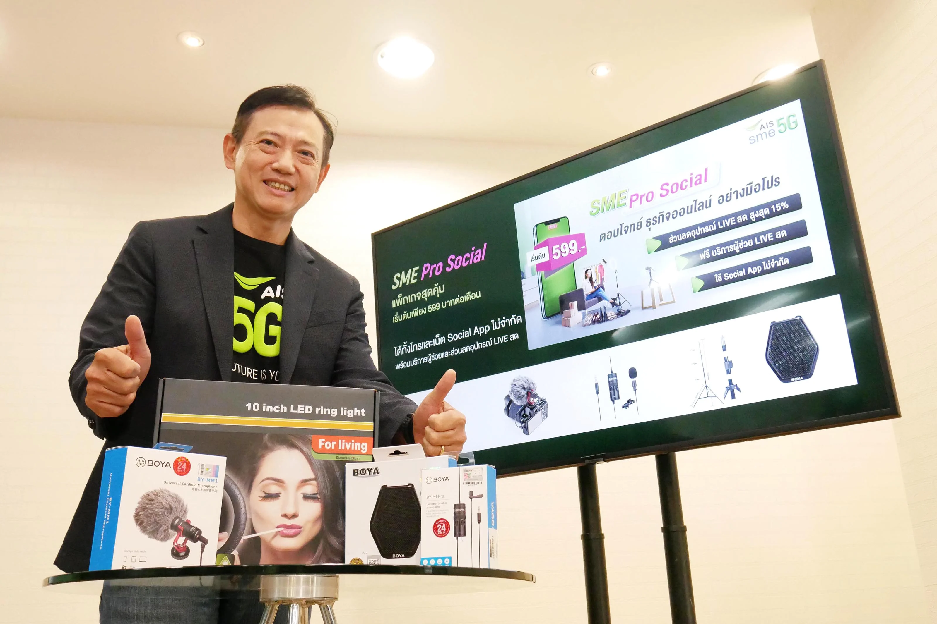 - AIS SME Mobile Services: ครบเครื่องทุกรูปแบบการสื่อสารที่ออกแบบมาแล้วว่าเหมาะกับธุรกิจออนไลน์ อาทิ SME Pro Social ให้เป็นนักธุรกิจออนไลน์แบบมือโปร เริ่มต้นเดือนละ 599 บาท พร้อมใช้ฟรีบริการผู้ช่วย LIVE สด, รับฟรีส่วนลดอุปกรณ์ LIVE สด เบื้องต้นแบบครบเซ็ต, ใช้ฟรี Social App. (Facebook, Instagram, LINE และ What App) พร้อมฟรีประกันภัยไซเบอร์ ลดความเสี่ยงที่ธุรกิจจะเสียหายจากการโจมตีทางไซเบอร์ในยุคนี้ นอกจากนี้ ยังมอบความพิเศษให้กับลูกค้าที่เปิดเบอร์ หรือย้ายค่ายได้คุ้มเต็มแรง 3 ต่อ คุ้มที่หนึ่ง รับอินเทอร์เน็ต 5G จำนวน 10 GB/เดือน นาน 3 เดือน เพื่อใช้ติดต่อสื่อสารช่วงวิกฤตโควิด คุ้มที่สอง รับสิทธิ์สินเชื่อจากธนาคาร UOB อัตราดอกเบี้ยพิเศษ และคุ้มที่สาม รับส่วนลดสูงสุดถึง 30% ในการซื้อ Tablet หรือ Smartphone (เฉพาะรุ่นที่ร่วมรายการ) จาก Samsung