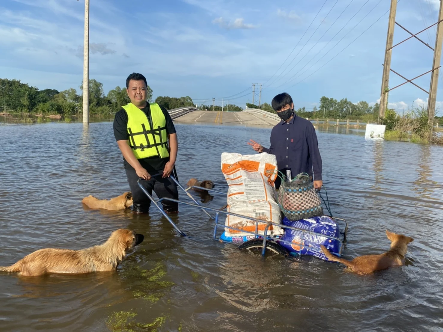 “เราไม่เคยเห็นภาพเช่นนี้ ที่สุนัขต้องว่ายน้ำมาเพื่อรับอาหาร” นายศักดาพล ทองจันทร์ ผู้จัดการฝ่ายชุมชนสัมพันธ์ของซอยด๊อกให้ข้อมูล “บ้านทั้งหลังจมอยู่ใต้น้ำเห็นแต่หลังคา เราต้องพายเรือเพื่อนำอาหารไปแจกจ่ายในจุดต่าง ๆ บางพื้นที่ที่เรือเข้าไม่ถึงก็จำเป็นต้องเดินลุยน้ำพร้อมอาหารเข้าไป เช่นที่ท่ากกแห่ จ.อุบลราชธานี”