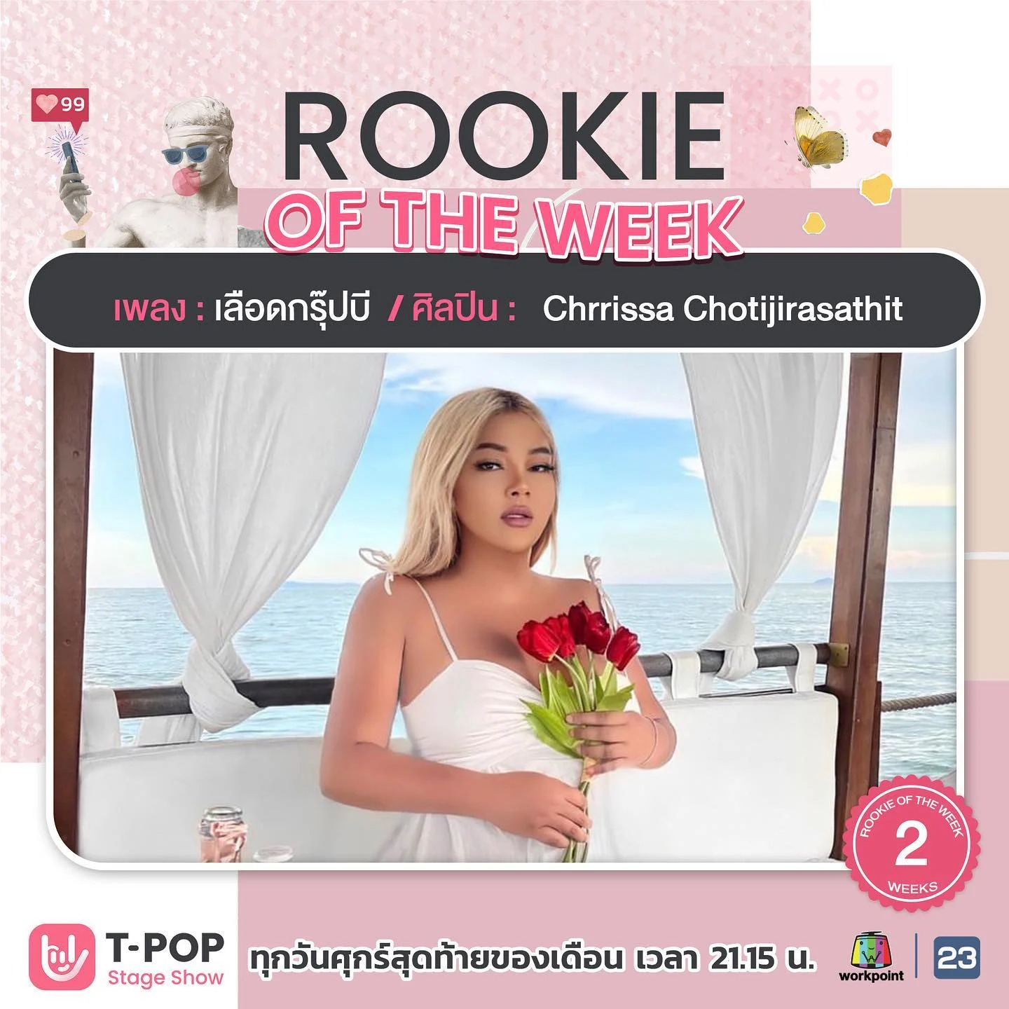 เลือดกรุ๊ปบี (B Blood Type) ซิงเกิลมาแรงเปิดต้นปี จาก เอิ๊ก ชาลิสา ที่กวาดยอดวิวกว่า 15 ล้าน ใน 3 สัปดาห์ บน YouTube ติดชาร์ตมาแรงในสตรีมมิ่งทั้ง Apple Music , Joox , iTunes และ Spotify พร้อมกับคว้ารางวัล Rookie of the week และ Music of the week 2 สัปดาห์ติดต่อกันแล้ว