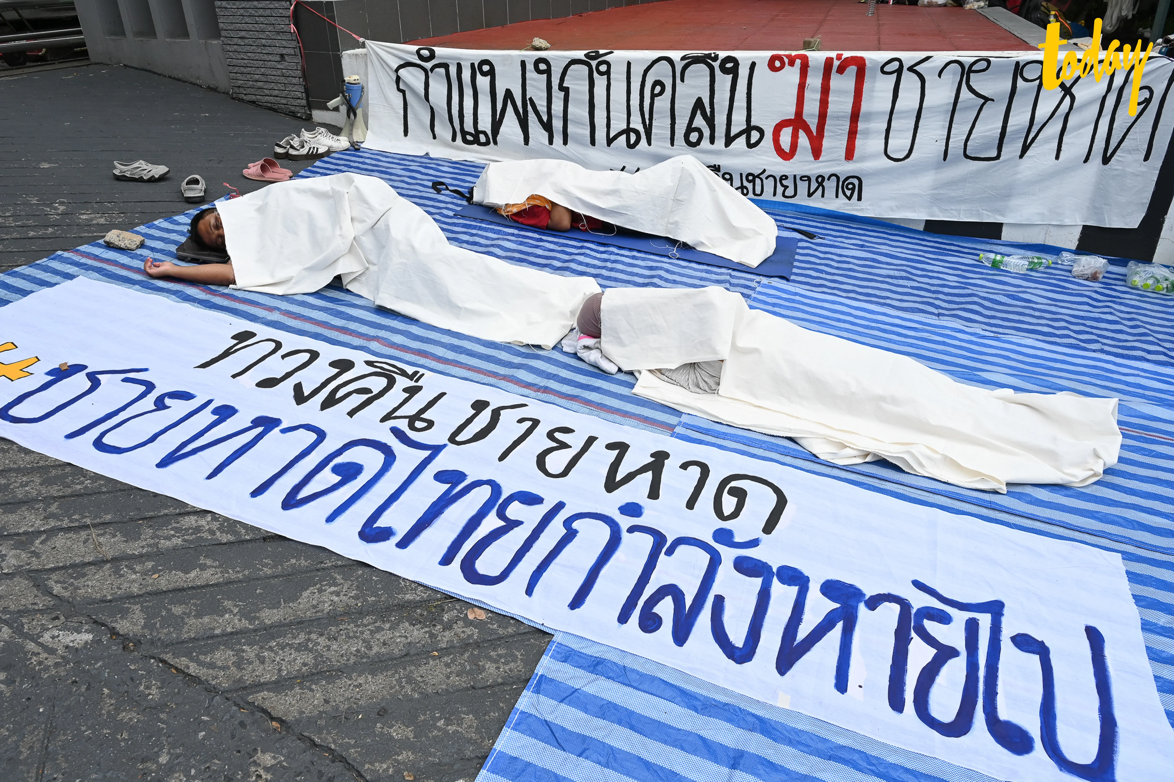 เครือข่ายภาคประชาชน นำโดย Beach for life เรียกร้องแก้ปัญหากำแพงกันคลื่น จัดวงเสวนาถึงปัญหาและผลกระทบของกำแพงกันคลื่นและการแสดงเชิงสัญลักษณ์นอนตายแสดงอารยะขัดขืน