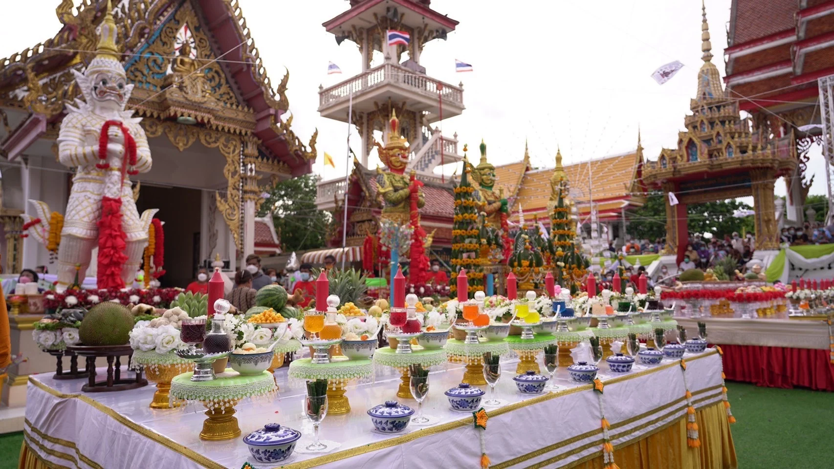 (ชัชชาติ สิทธิพันธุ์ กับ ปวีณา หงสกุล ร่วมพิธีเบิกเนตรท้าวเวสสุวรรณ ที่วัดเกาะสุวรรณาราม เขตสายไหม)