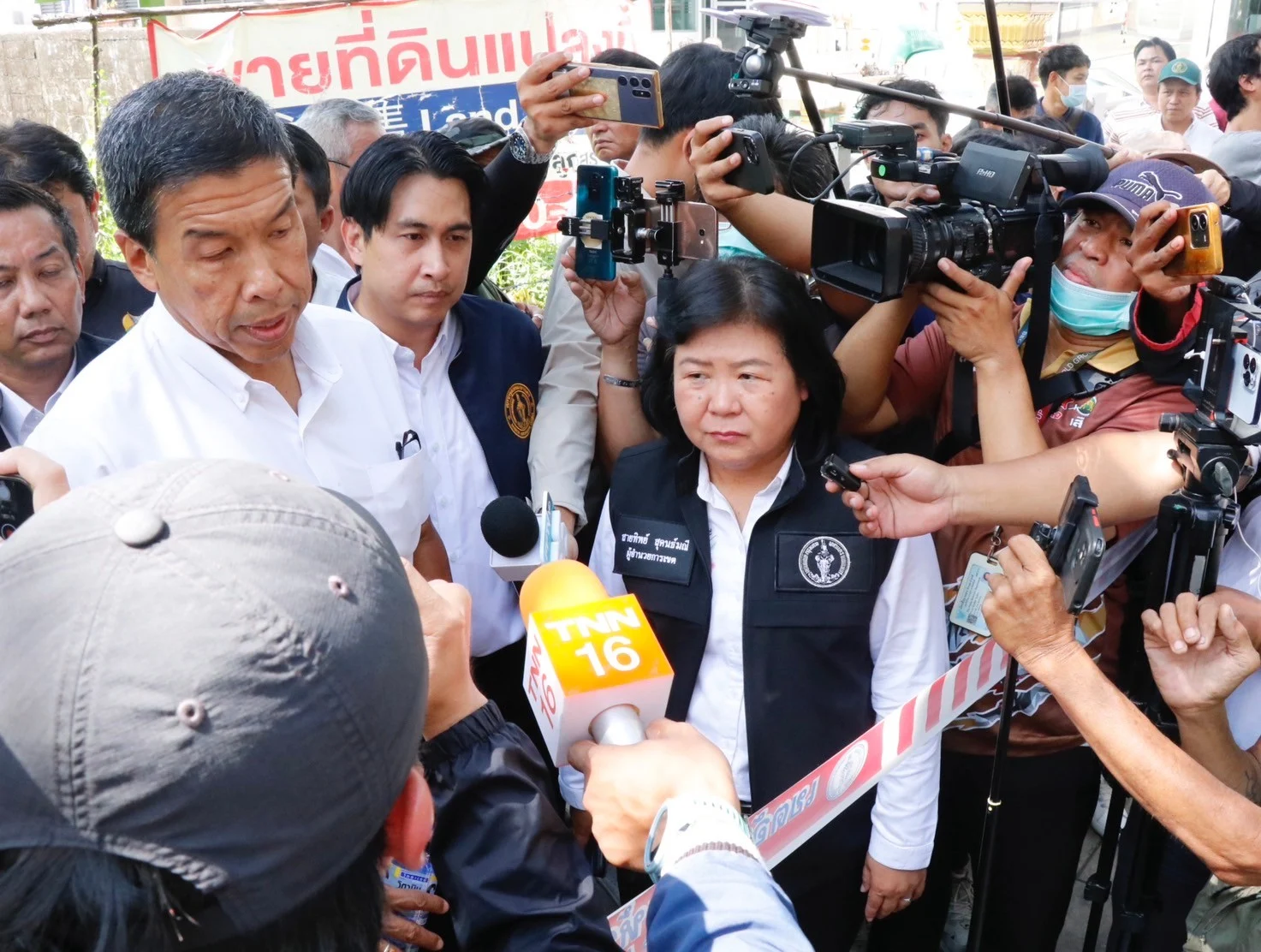 นายชัชชาติ สิทธิพันธุ์ ผู้ว่าราชการกรุงเทพมหานคร (ผู้ว่าฯ กทม.) และนายวิศณุ ทรัพย์สมพล รองผู้ว่าฯ กทม. ลงพื้นที่บริเวณซอยสุขุมวิท 64/1 เขตพระโขนง ตรวจสอบกรณีถนนบริเวณพื้นที่ก่อสร้างโครงการนำสายไฟฟ้าลงดินทรุดตัว ขณะรถบรรทุกวิ่งผ่าน