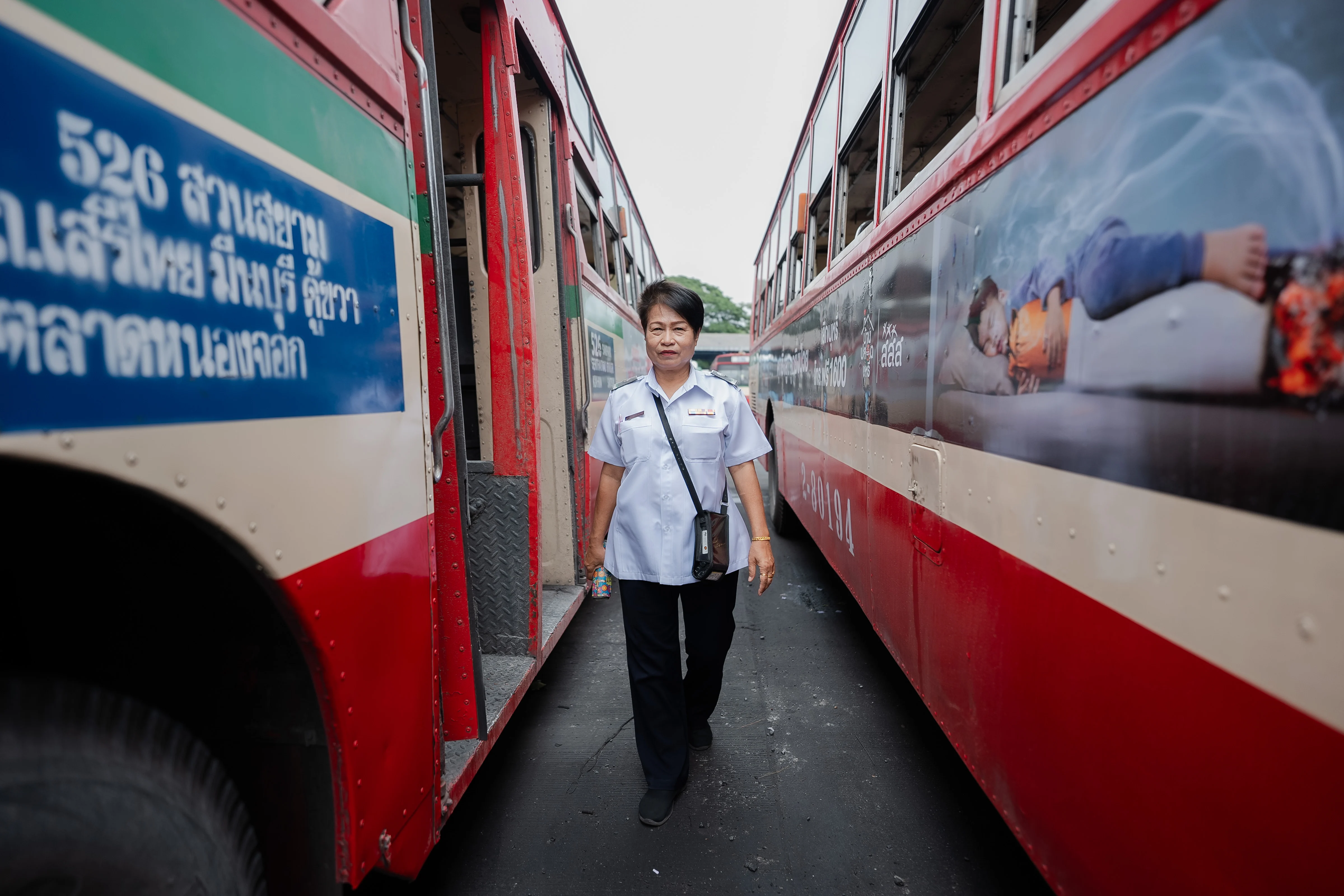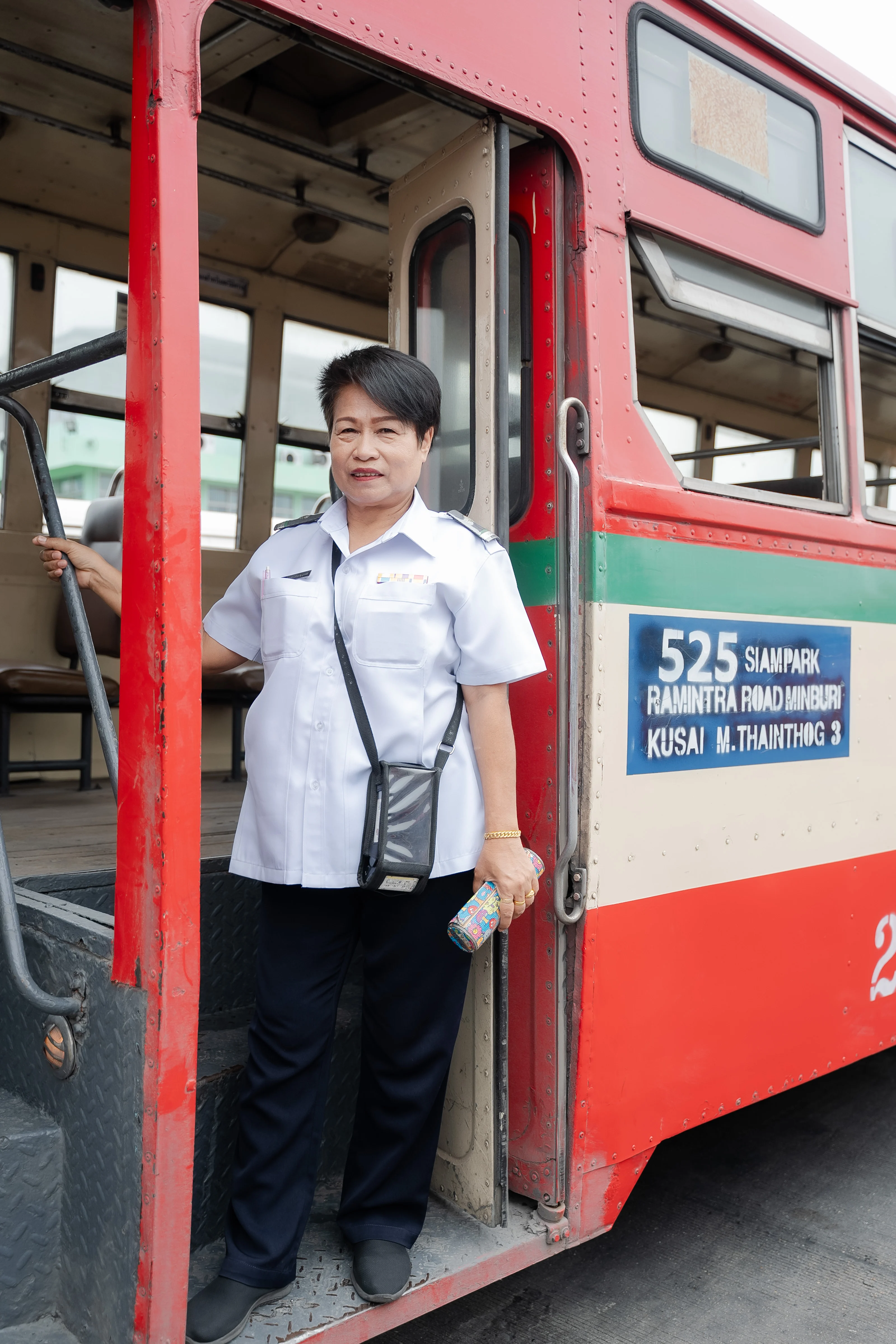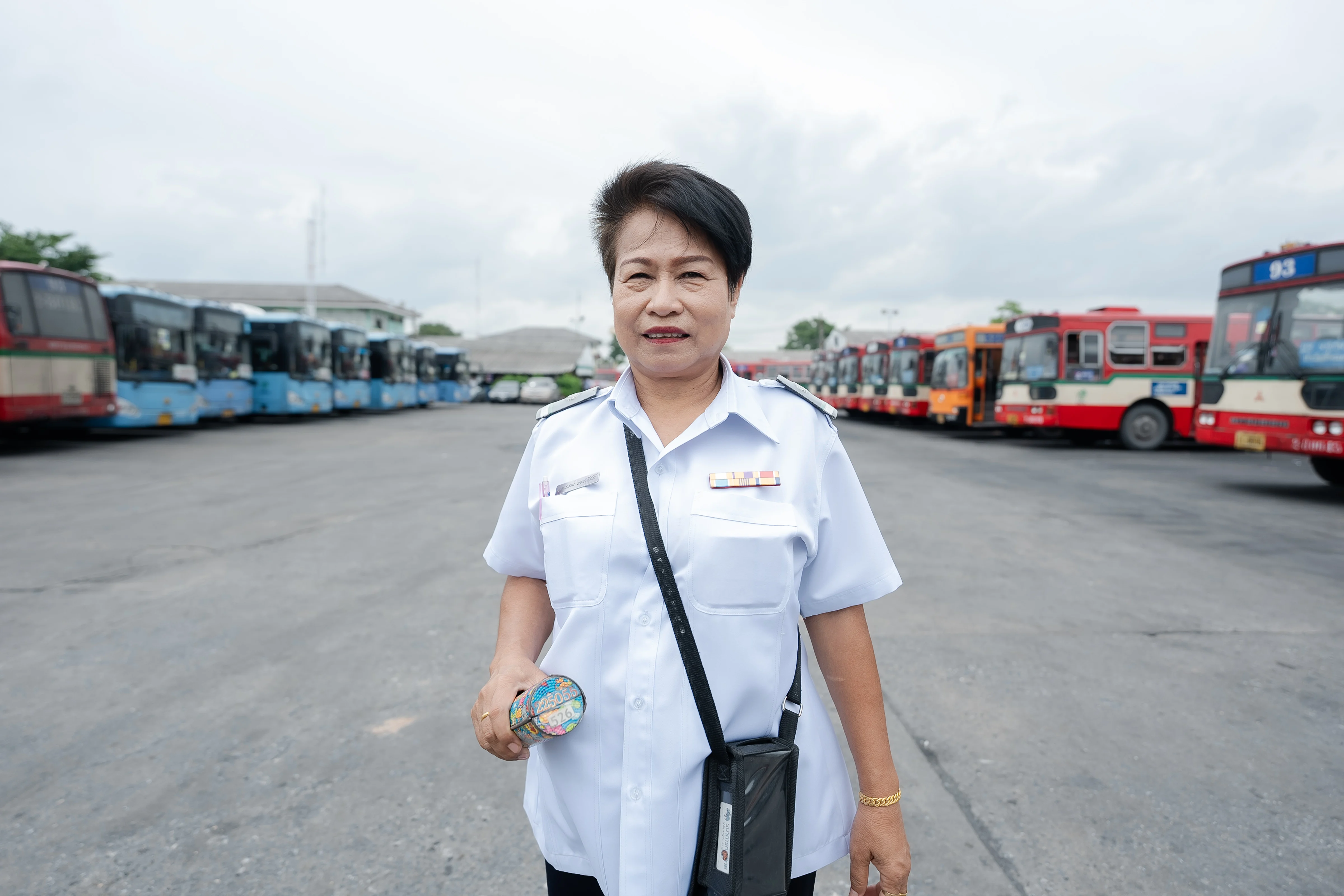 ป้าแมว-วราภรณ์ ยงสวัสดิ์ พนักงานเก็บค่าโดยสาร องค์การขนส่งมวลชนกรุงเทพ (ขสมก.) ประจำรถเมล์สาย 525 และ 526