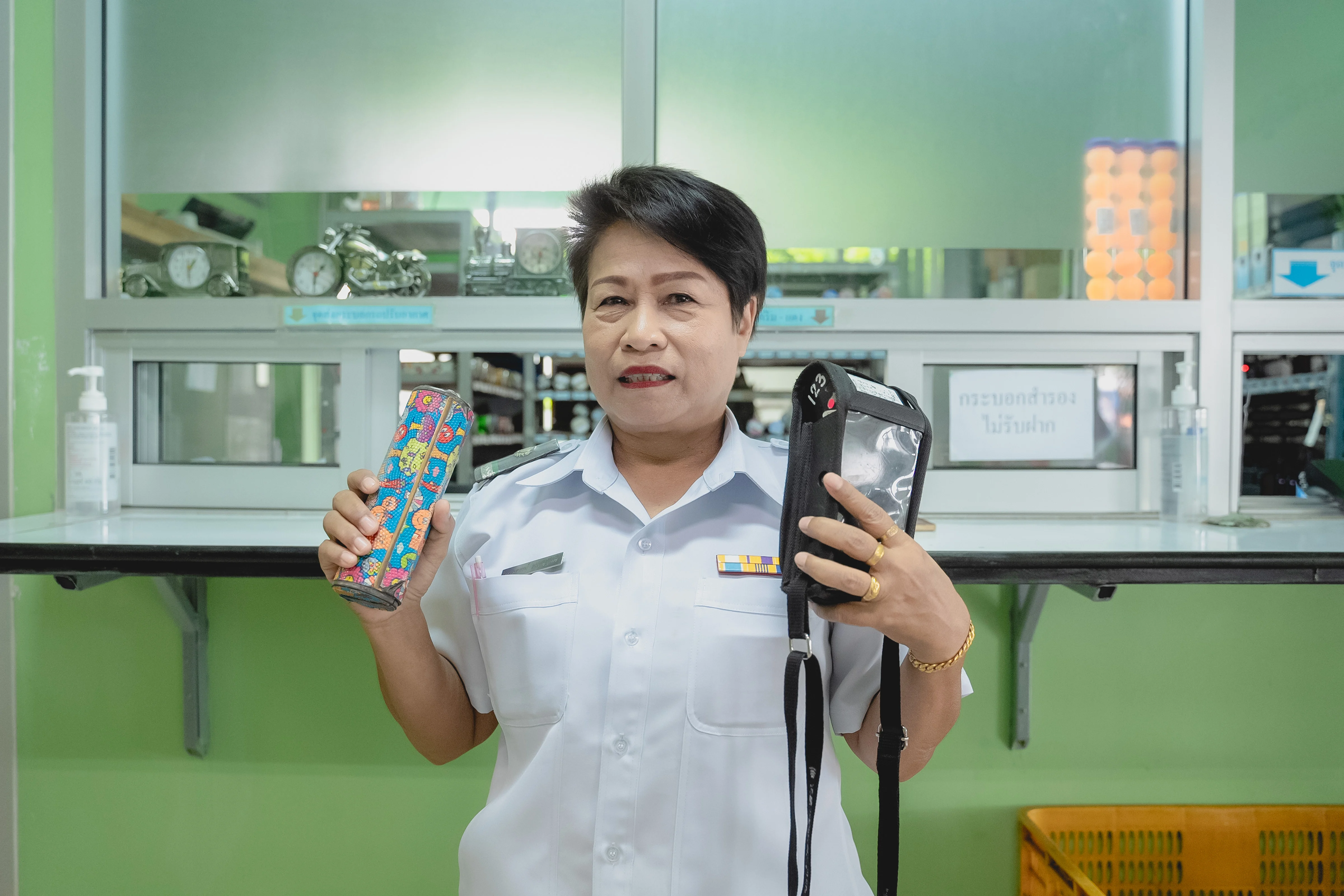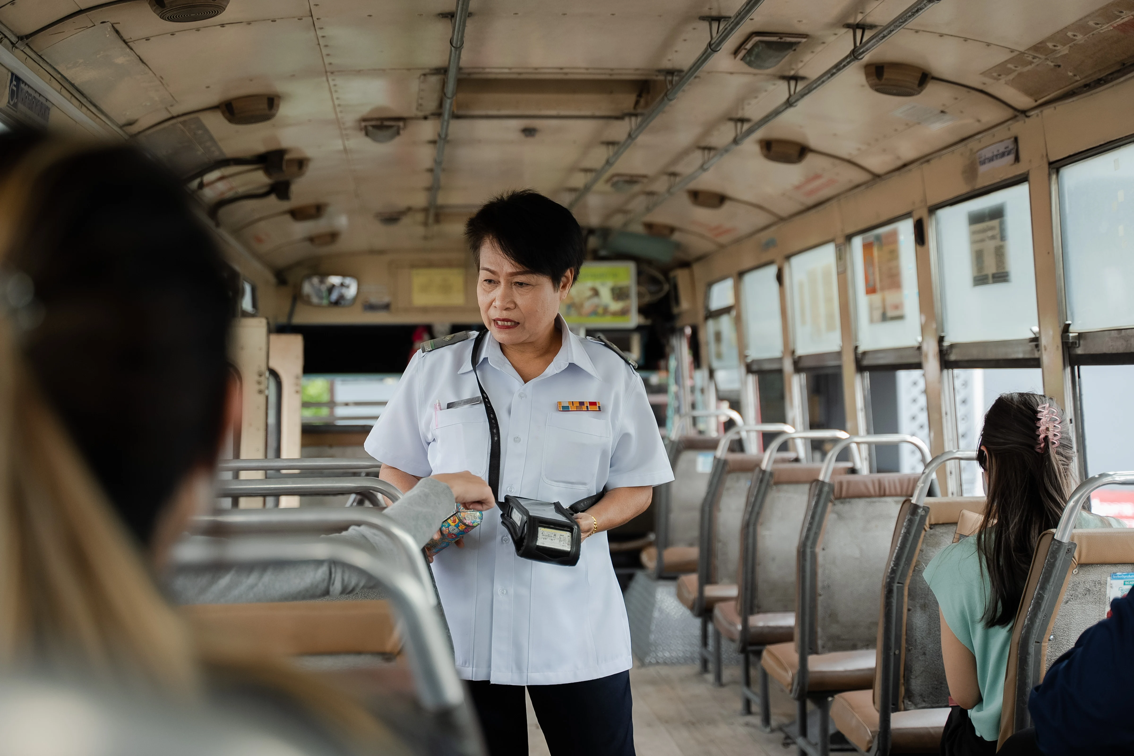 แน่นอนว่านอกจากคุณภาพรถ ความปลอดภัยและค่าบริการแล้ว สิ่งหนึ่งที่ผู้โดยสารตัดสินใจเลือกก้าวขึ้นรถเมล์คือ “กระเป๋ารถเมล์” ที่ใส่ใจผู้โดยสารและรอยยิ้มพร้อมให้บริการ ‘ป้าแมว’ เป็นกระเป๋ารถเมล์มาตั้งแต่วัยสาว จนย่างเข้าใกล้วัยเกษียณ รักในอาชีพนี้มากว่า 42 ปี โดยได้ให้บริการบนรถเมล์ ขสมก. มาเเล้วหลายสาย และเห็นการเปลี่ยนแปลงมากมาย ยืนยันกระเป๋ารถเมล์ ขสมก. ให้บริการยืนหนึ่งเรื่องใส่ใจผู้โดยสาร