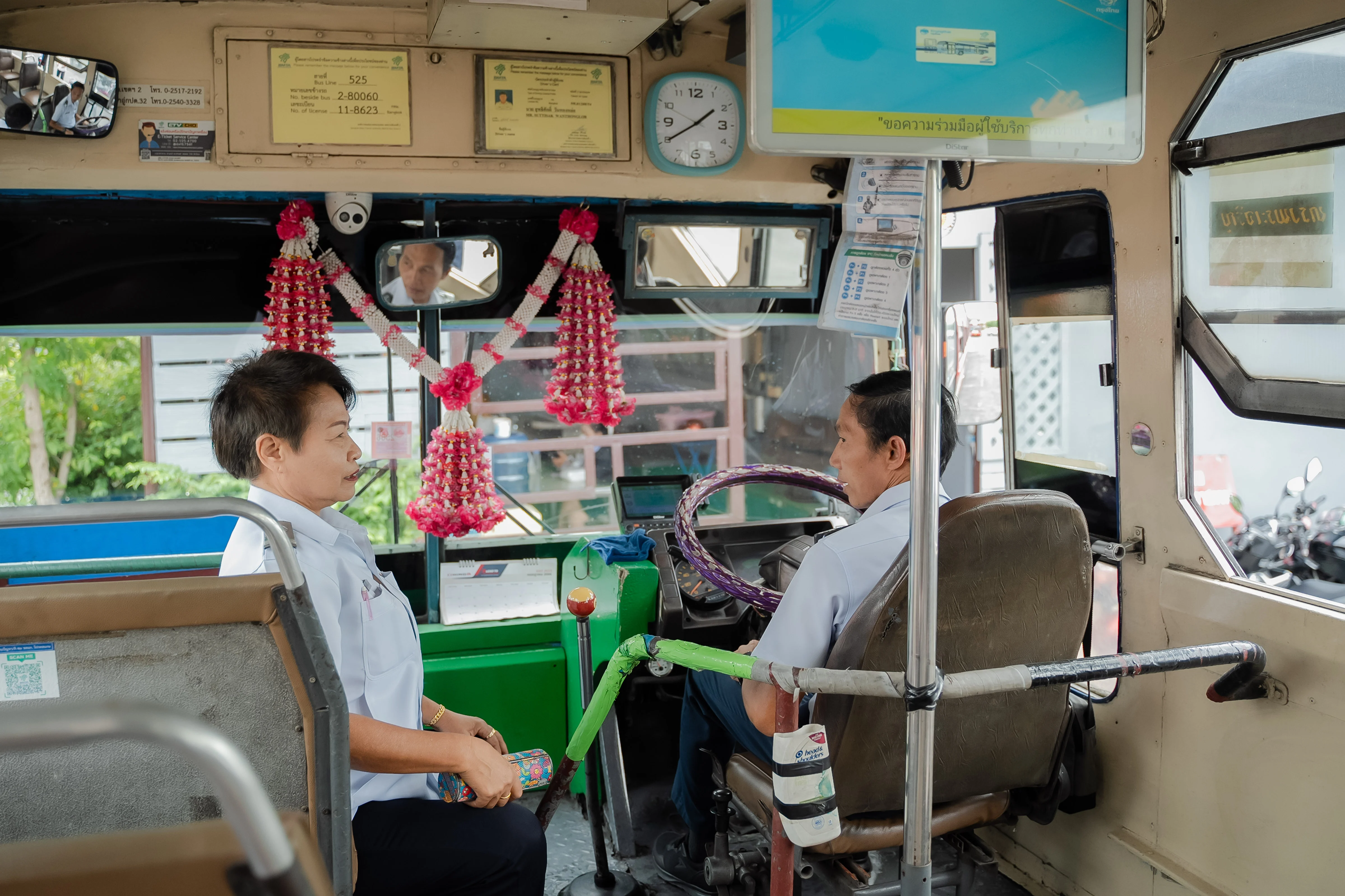 ผู้โดยสารส่วนใหญ่ของรถเมล์สาย 525 มักจะเป็นนักเรียน และพนักงานโรงงาน พนักงานบริษัท ส่วนใหญ่จะเป็นลูกค้าประจำ ซึ่งเธอจำหน้าได้เกือบทุกคน ขึ้นรถมาก็ทักทายกัน บางคนนั่งรถตั้งแต่เรียนหนังสือจนเรียนจบมีงานทำ