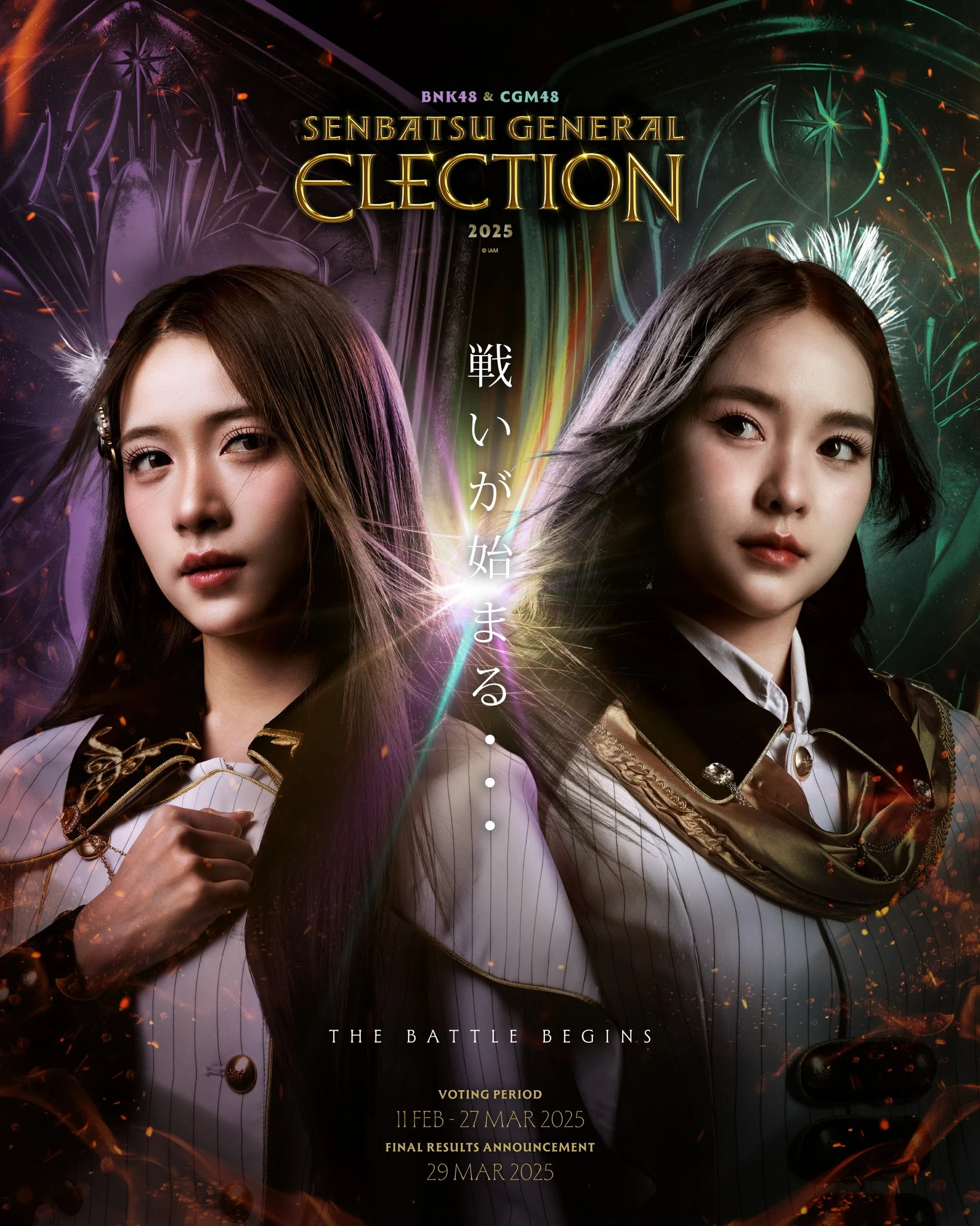 แค่ปล่อยภาพโปสเตอร์ก็เดือดแล้ว! สำหรับการกลับมาของกิจกรรม BNK48 & CGM48 Senbatsu General Election 2025 หรือ งาน GE เลือกตั้งครั้งที่ 5 โดยเป็นภาพโปสเตอร์ของกัปตันวง (ฮูพ) ปาฏลี ประเสริฐธีระชัย กัปตันวง BNK48 และ (ลูกเกด) พิมพ์ลภัส สุวรรณน้อย กัปตันวง CGM48 ในสังกัด iAM งานนี้ทำเอาแฟนคลับฮือฮากันเลยทีเดียว ซึ่งจะเปิดโอกาสให้แฟนๆ ร่วมลงคะแนนโหวตให้กับไอดอลในดวงใจ “BNK48 & CGM48” ที่ลงมัครทั้งหมด 48 คน โดยผู้ที่ได้รับคะแนนสูงสุด 12 คนแรก จะได้อยู่ในซิงเกิลหลักถัดไป พร้อมเดินทางไปถ่าย MV ที่ประเทศญี่ปุ่น สามารถโหวตได้ตั้งแต่วันที่ 11 กุมภาพันธ์ – 27 มีนาคมนี้ และจะประกาศผลในวันที่ 29 มีนาคม 2568