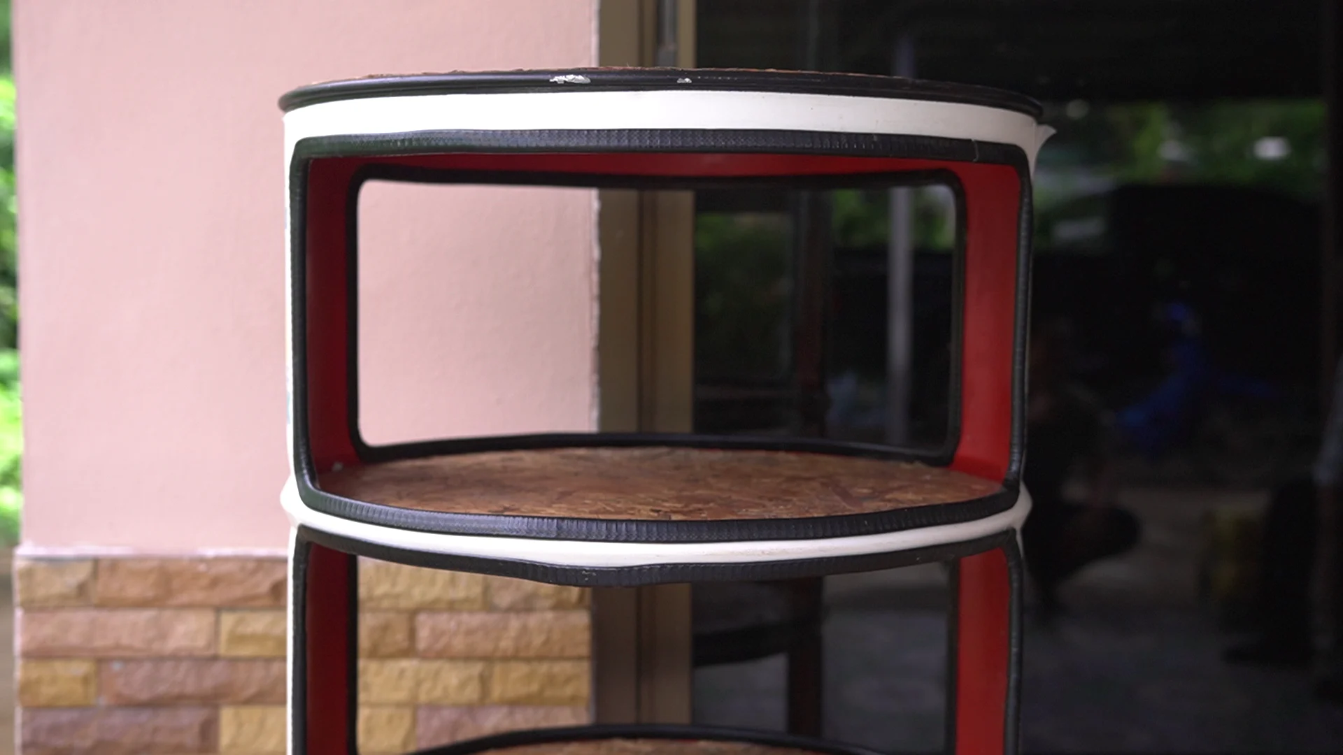 ชั้นวางของ สินค้าชิ้นแรกที่ประดิษฐ์จากถังน้ำมัน และขายได้เงินก้อนแรก
