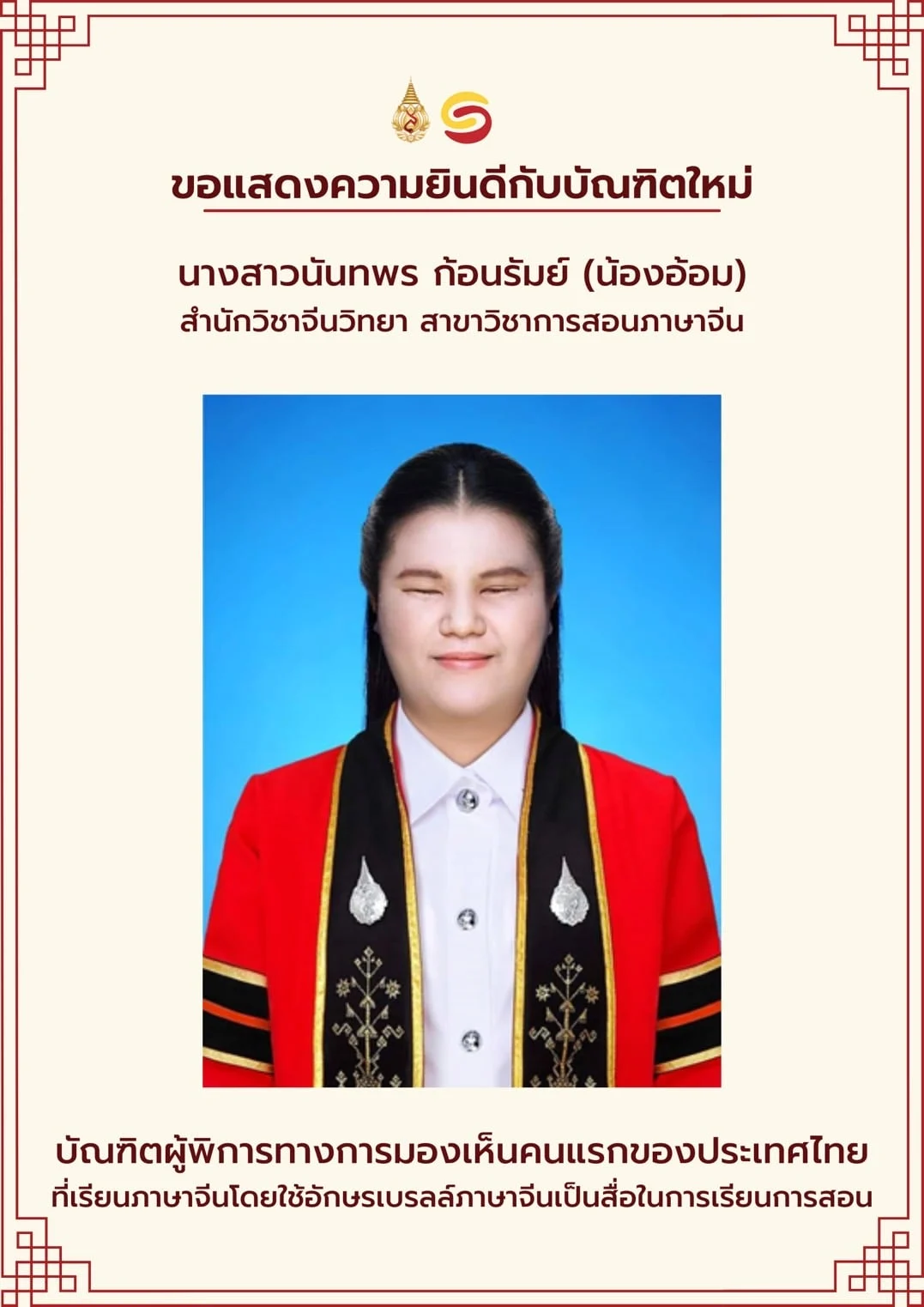 ชื่นชม “ว่าที่คุณครู” บัณฑิตพิการสายตาคนแรกของไทย เรียนภาษาจีนด้วยอักษรเบรลล์
