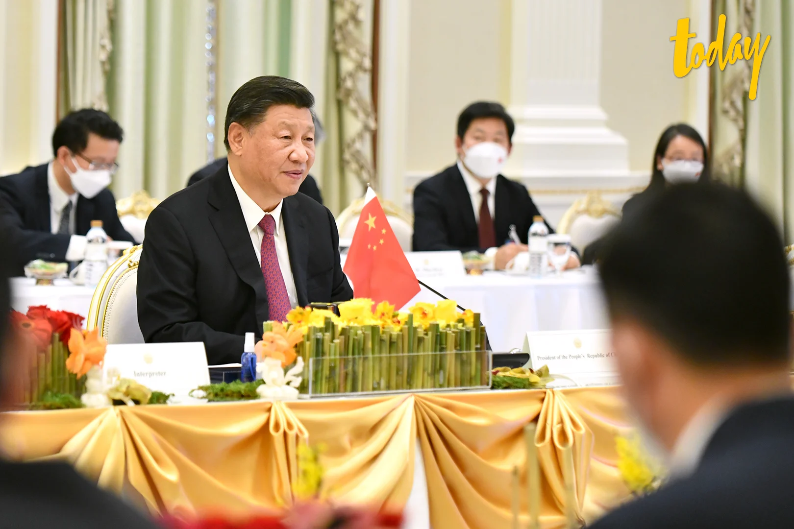 ประธานาธิบดีจีนรู้สึกยินดีเป็นเกียรติที่ได้หารือกับนายกรัฐมนตรีครั้งนี้ พร้อมกล่าวขอบคุณนายกรัฐมนตรีและรัฐบาลในการจัดการต้อนรับ ทั้งนี้ มิตรภาพจีน-ไทยสืบทอดกันมาหลายพันปี ประชาชนมีความสัมพันธ์เหมือนพี่น้องกัน โดยจีนให้ความสำคัญกับการพัฒนาความสัมพันธ์จีน-ไทย เพราะจีนและไทยไม่ใช่อื่นไกลคือพี่น้องกัน จีนพร้อมร่วมมือกันสรรค์สร้างความเจริญรุ่งเรืองและอนาคตร่วมกัน เปิดศักราชใหม่ของความร่วมมือ เพื่อผลประโยชน์ให้แก่ประชาชนของทั้งสองประเทศ